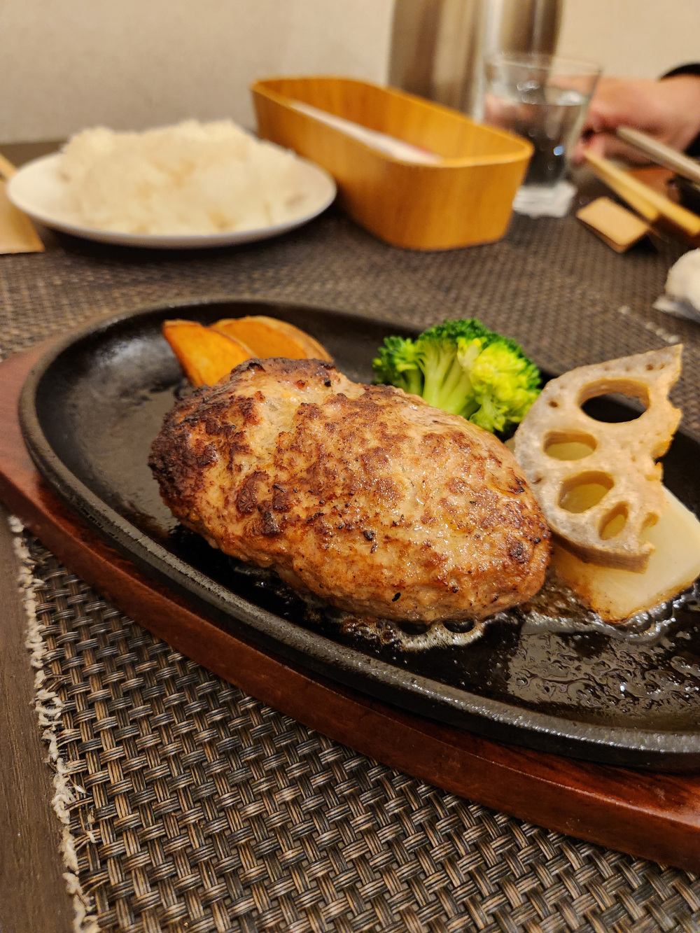 ジュージュー音を立てて運ばれてくる鉄板の音と、ハンバーグの香ばしい香りが食欲を刺激します。