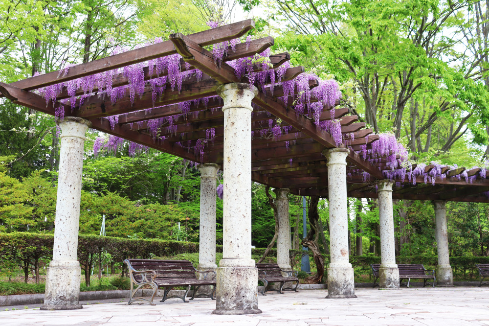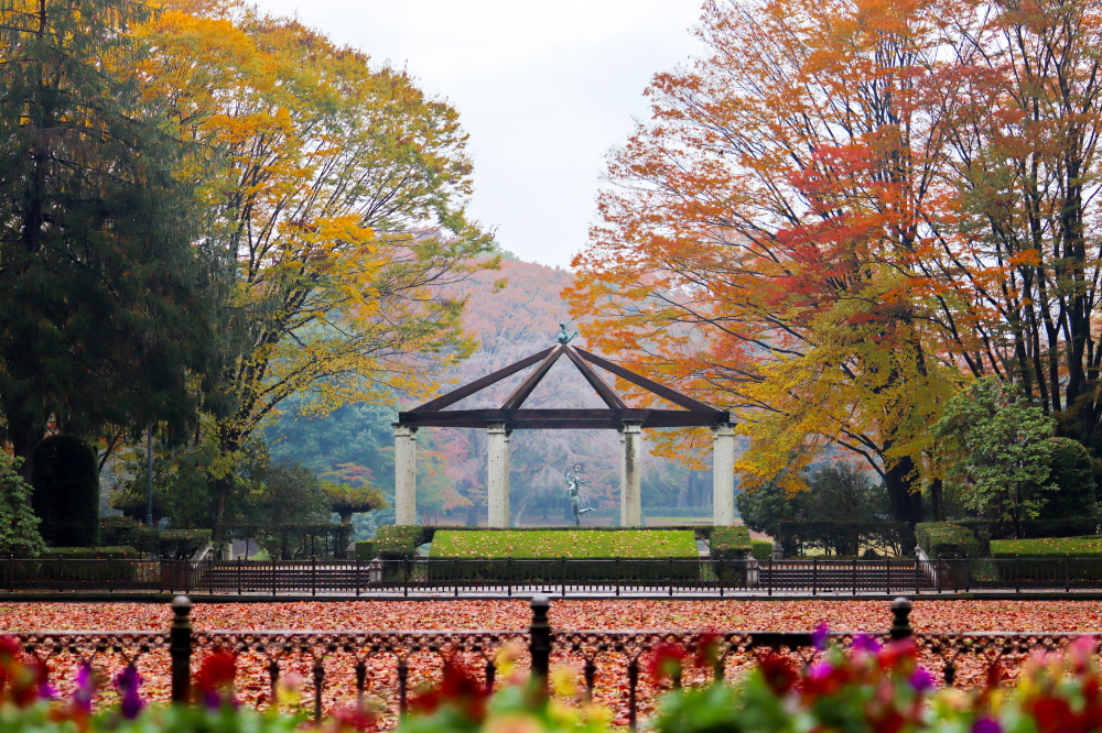 園内にはヨーロッパ風の庭園や日本庭園、大きな池(昭和大池)があり、四季折々の景色を楽しみながらのんびり過ごせます。