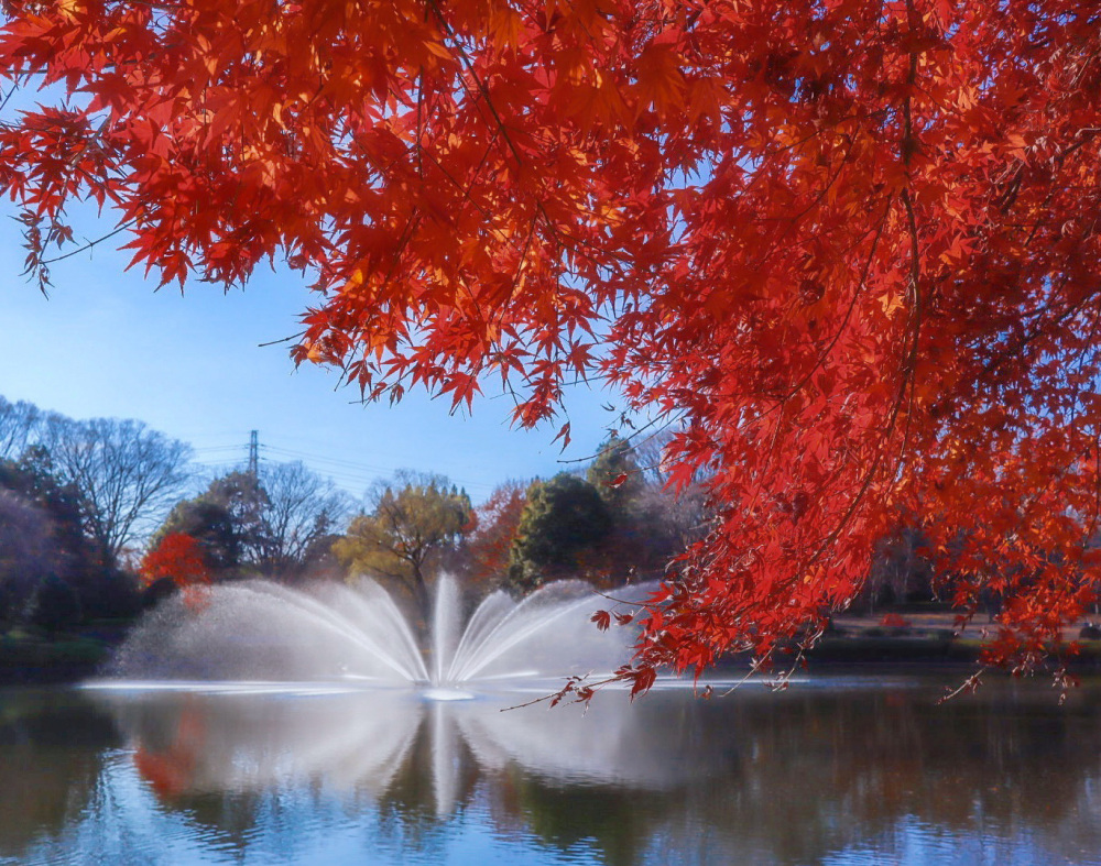 栃木県中央公園は噴水もとても綺麗な公園です。園内で一番大きな昭和大池の噴水は、高さ約20mまで吹き上がり、条件が整えば虹がかかることも。紅葉と噴水を一緒に撮影できるのも魅力です。