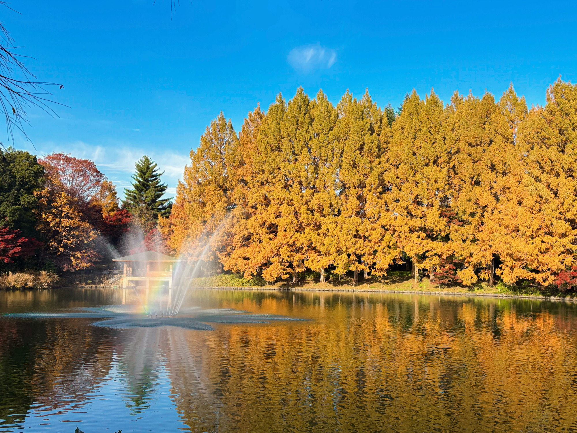 公園管理課の方によると虹は10月中旬の14〜15時台に出やすいそうです。