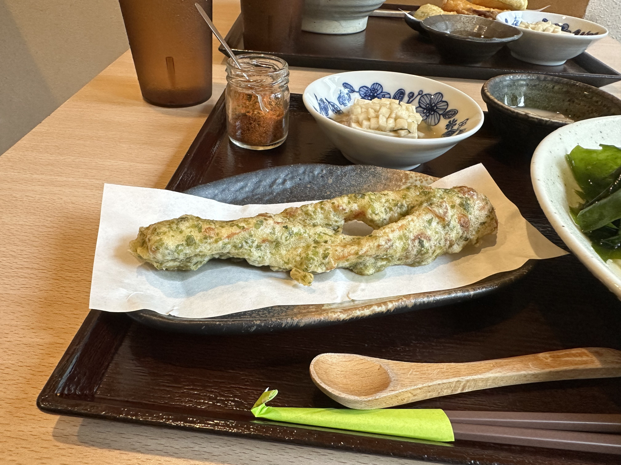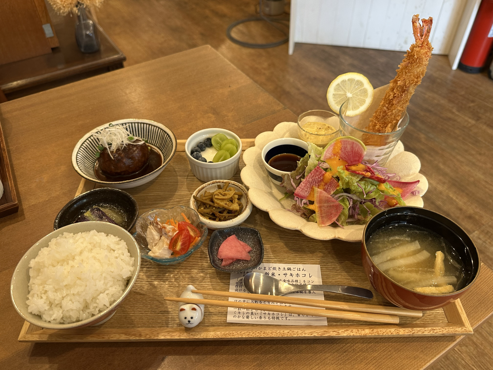 取材日は、「大海老フライといろいろおかず盛り膳」と「曲げわっぱ盆の小鉢膳」を注文!