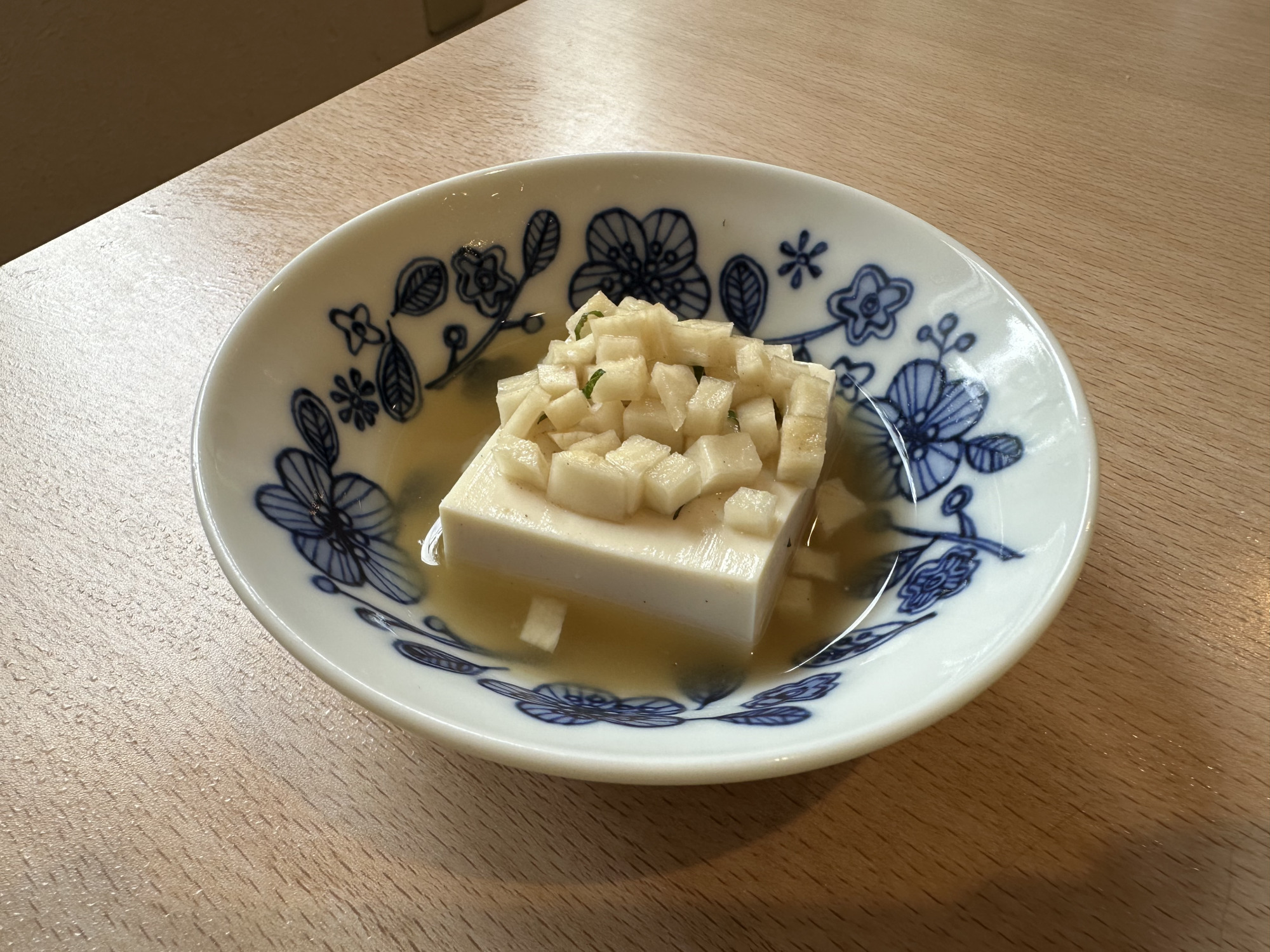 お通しの冷奴を食べながらうどんができるのを待ちます。このワクワクする時間が、意外と好きなんですよね♪