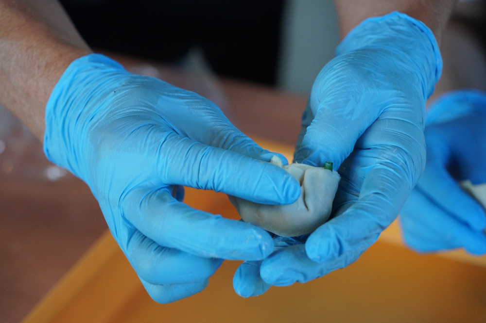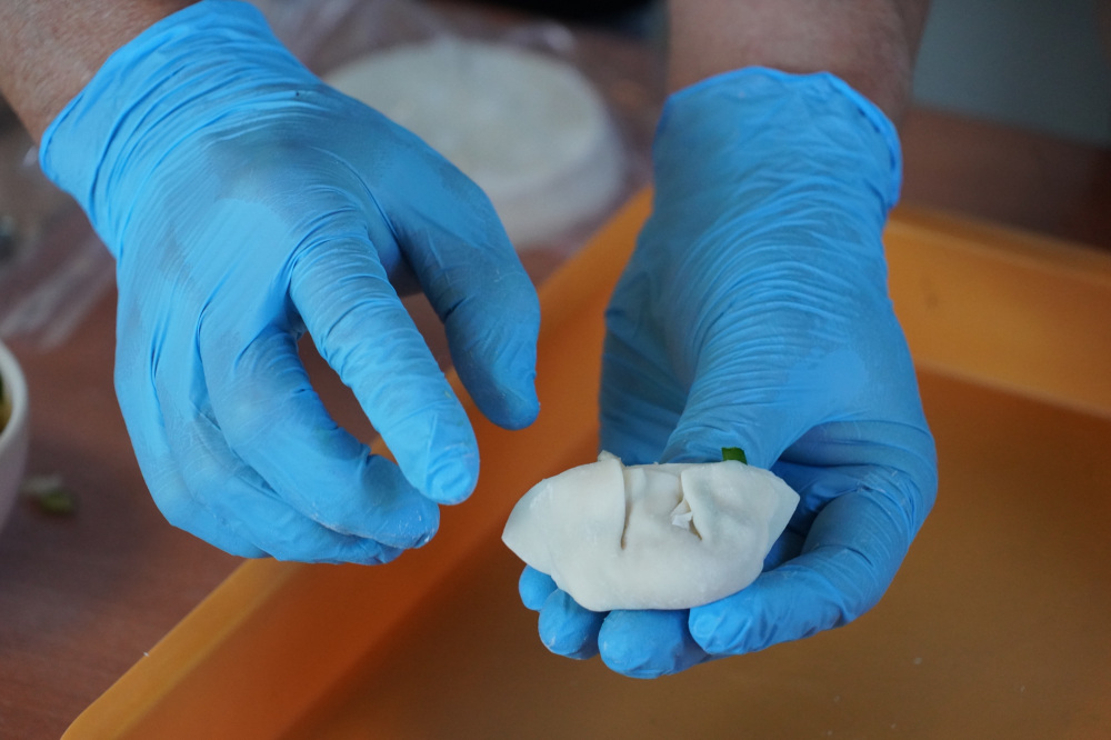 実際にやってみると、餡を入れすぎて皮が破れたり、ひだがうまく寄らなかったりと苦戦しつつ…