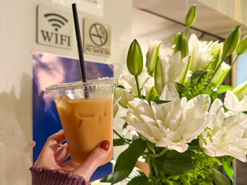 イベント当日は、全店舗にさまざまなユリが飾られ、音楽が流れる空間に華やぎを添えていました。