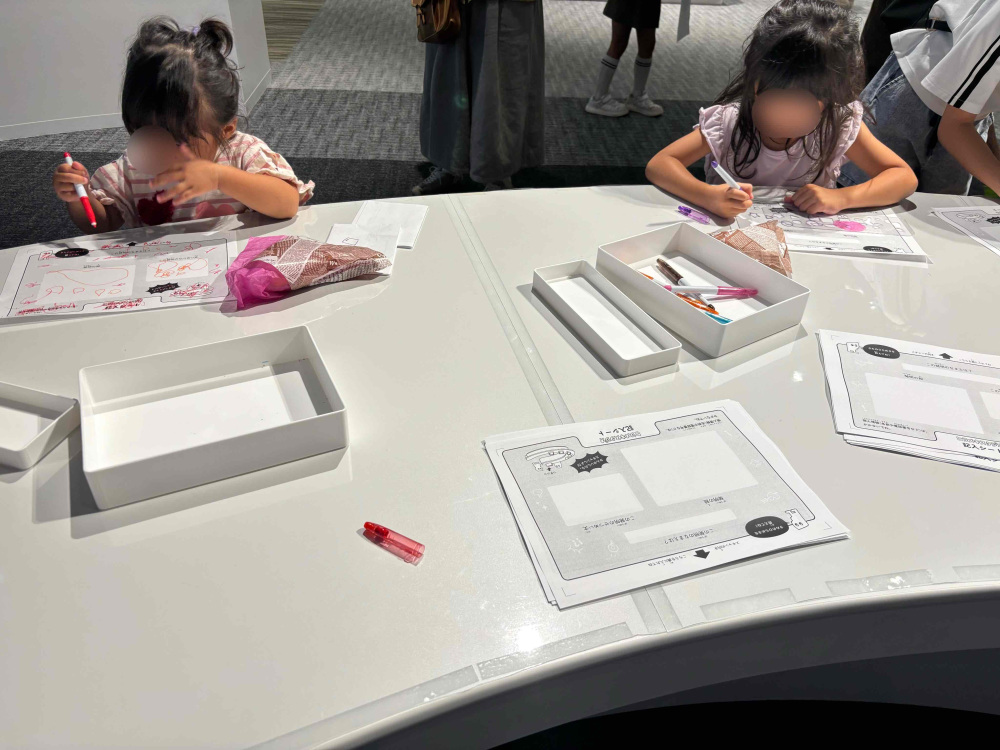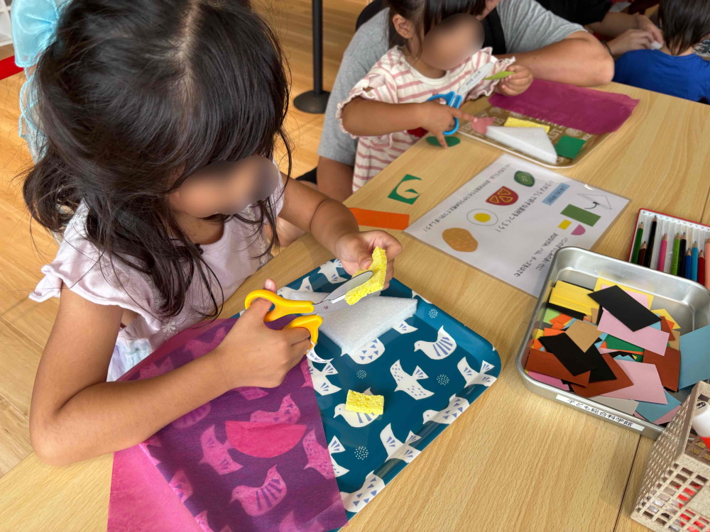 中でも、無料で参加できるワークショップでは、のりやはさみを使ってサンドイッチを作ったのがとても楽しかったようで家でも何度も遊んでいます。