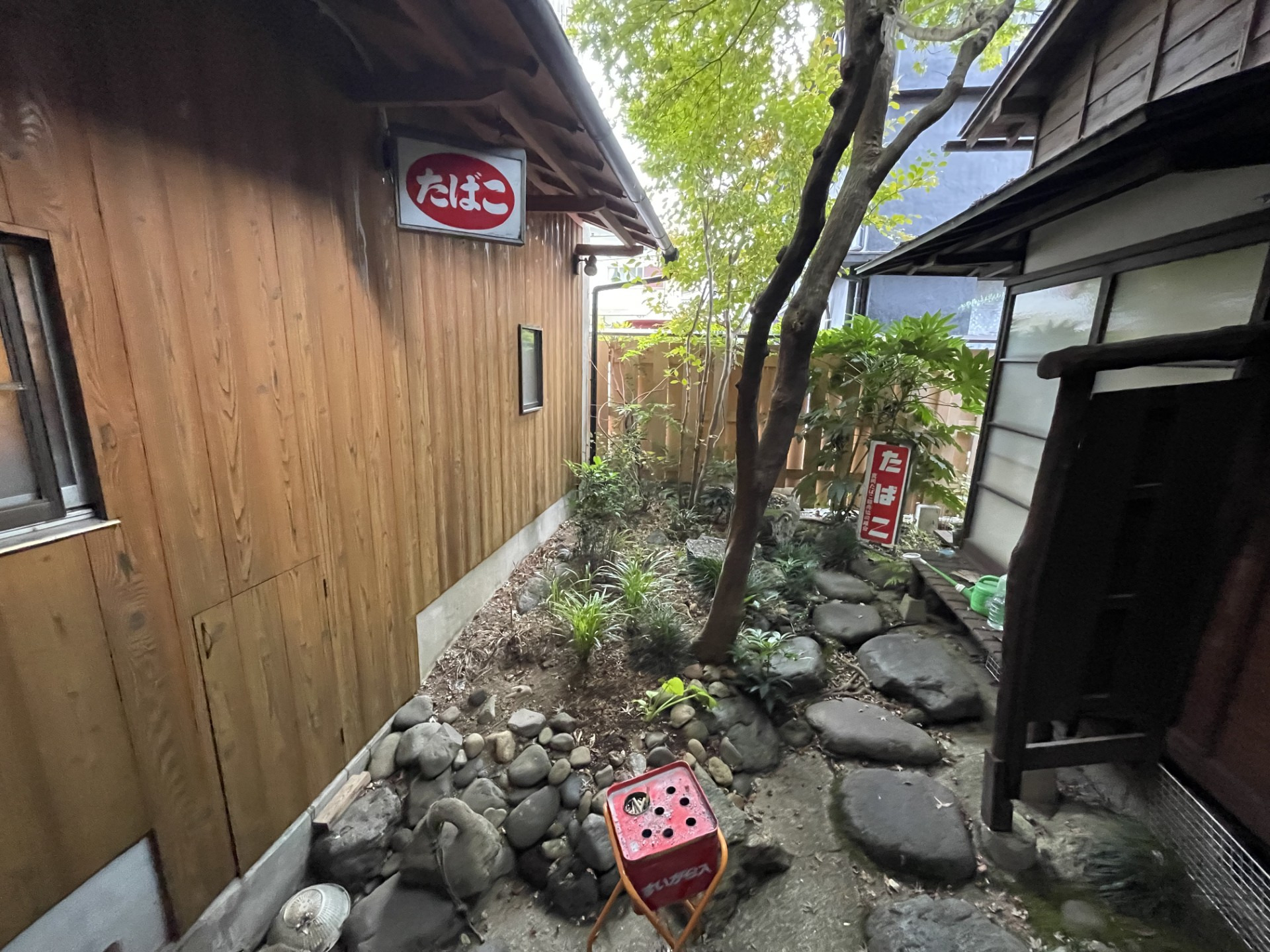 奥座敷の席に案内されたら奥入り口扉を開けて、中庭に入り下駄箱で靴を脱いで奥座敷にお入りください。トイレ横の座敷から上がろうとするとお店のおばあちゃんに怒られる場合があります(笑)。