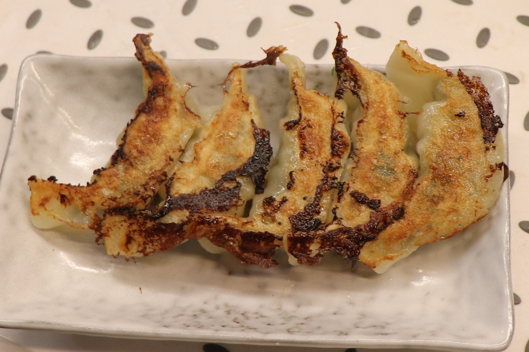 庄助の餃子はニラと豚ひき肉にヤーコンまたはクワイを加えたニラ餃子。栃木県はニラの生産量全国2位を誇り、その中でもママの故郷鹿沼市産の美味しいニラをたっぷりと使用しています。ニンニクを使用していないので女性にも大人気です。お酢、ラー油、お醤油の定番タレで食すところ、僕はたっぷりの胡椒に醤油を加えたタレで食べます。胡椒の辛さとニラの甘みでお酒が進みます。