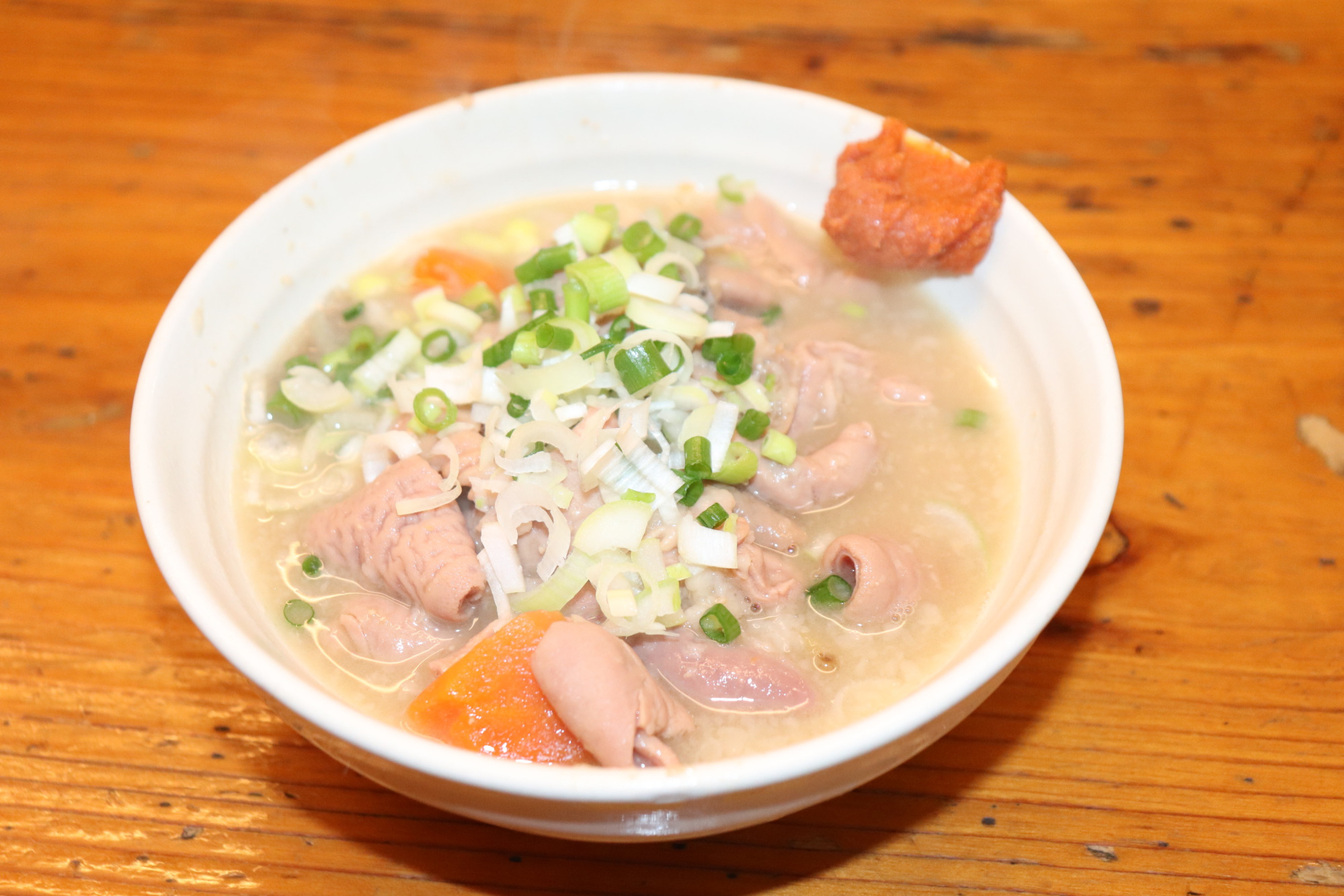 栃木県産豚の新鮮なもつを使用。じっくり煮込まれたシロとガツは臭みもなく、大ぶりにカットされたモツは大根、ニンジン、こんにゃくとともに白味噌で煮込まれ、柔らかくすっきりとした味わいです。