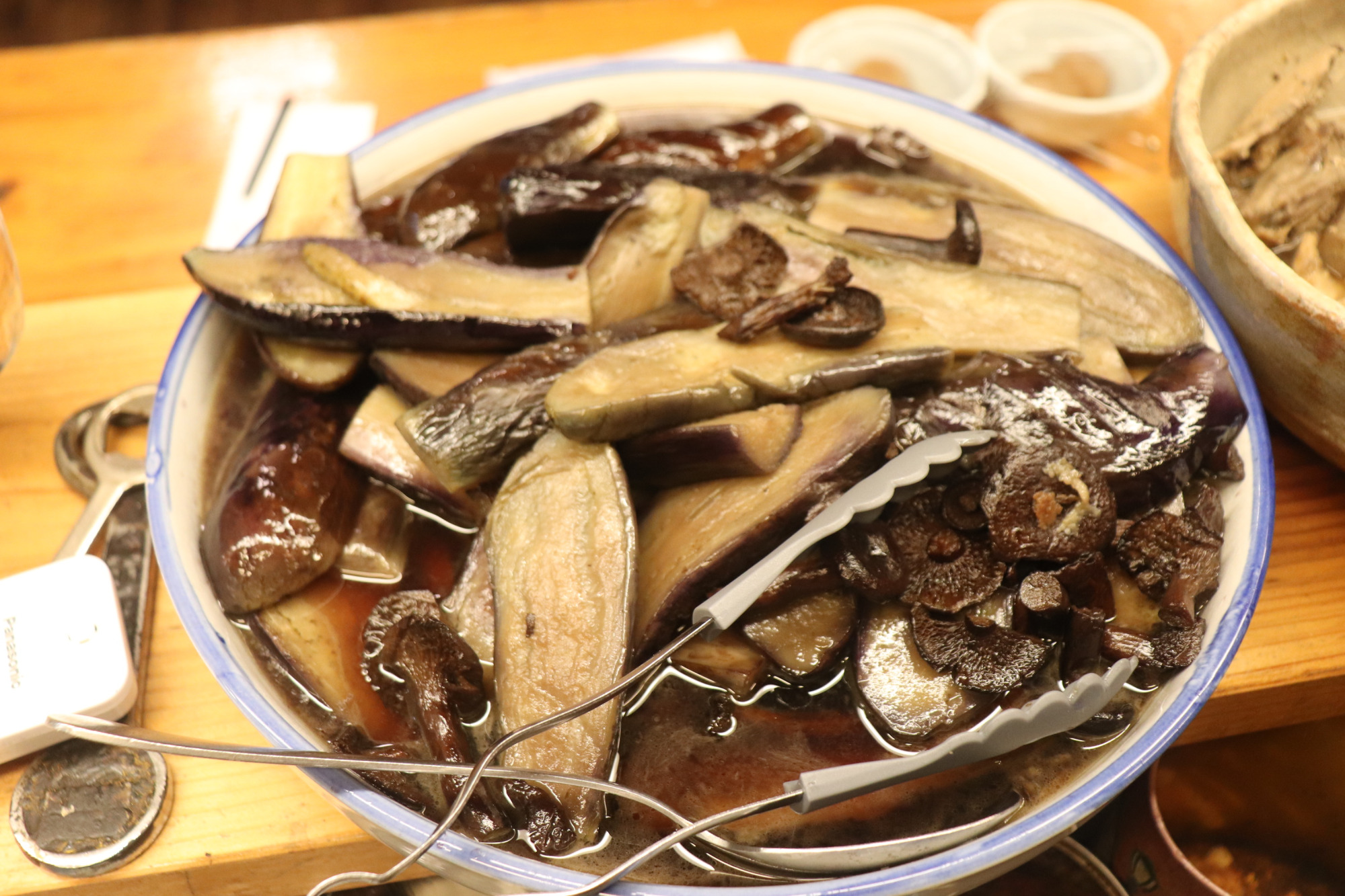 栃木県の郷土料理。夏に生えるきのこ「乳茸(ちちたけ)」と茄子を油で炒め煮にしたもの。乳茸はかさやじくを傷付けると白いお乳のような汁が出ることからその名がついています。きのこの食感を楽しむというよりは、乳茸の出汁を茄子に含ませて味わうもの。栃木県では、ちたけ茄子煮をめんつゆでのばしてそうめんと合わせる「ちたけそうめん」をよく食べます。「孤独のグルメ」でも井之頭五郎さんが店主に勧められ美味しそうに食べる姿が放送されました。基本、ちたけそうめんは提供しておりませんのご注意ください。