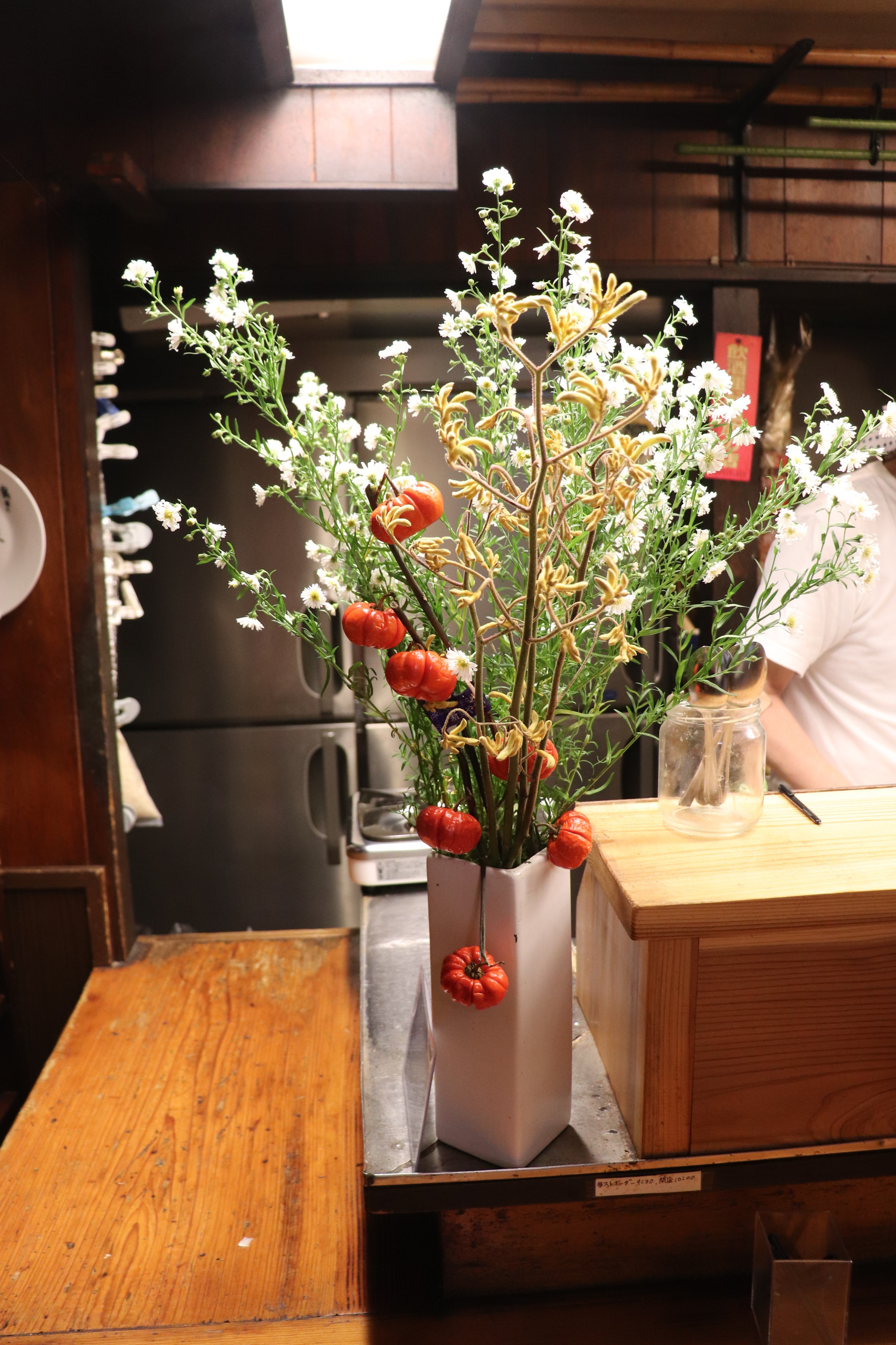 店内には節子ママが季節の草花を自ら生けた生け花があります。