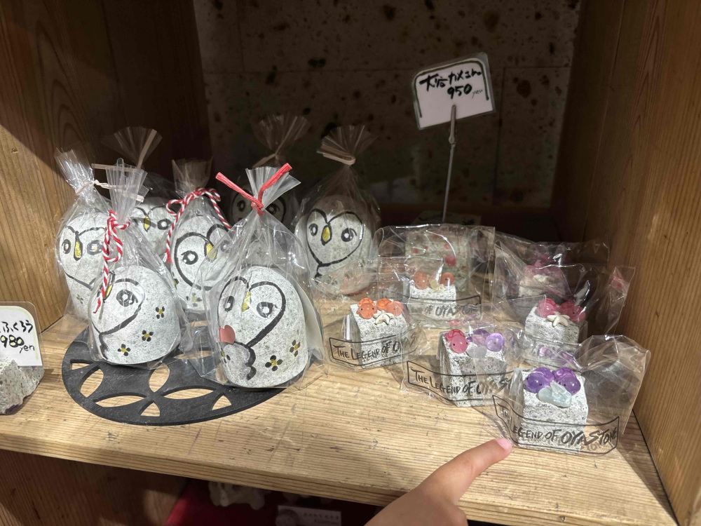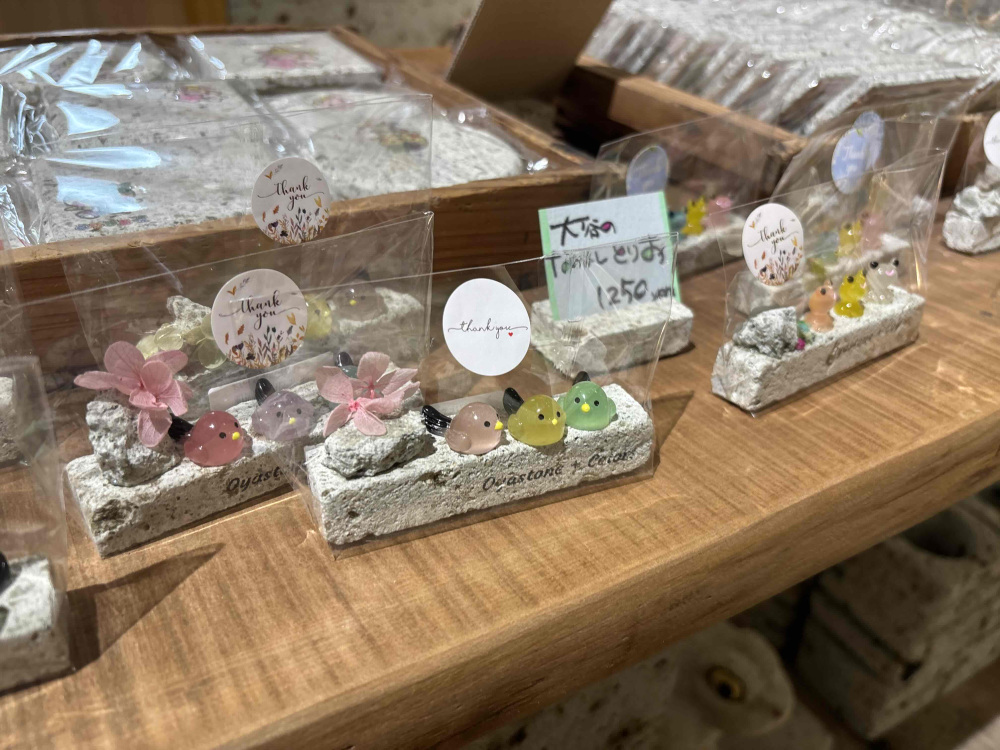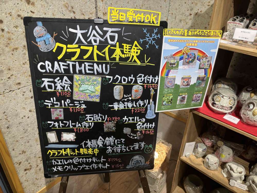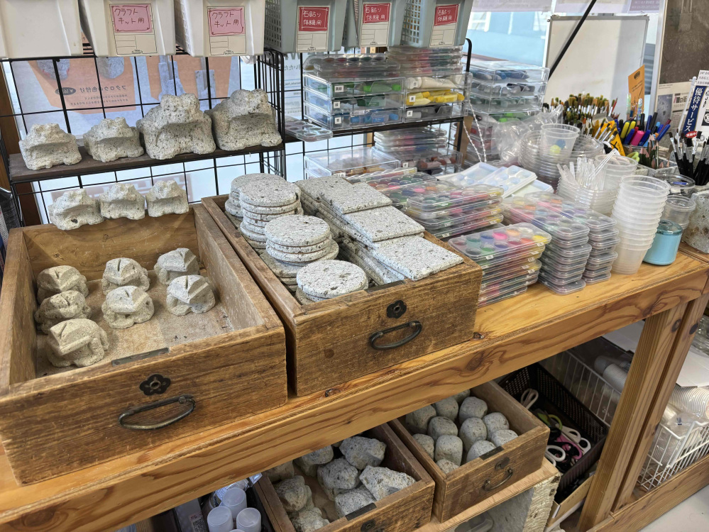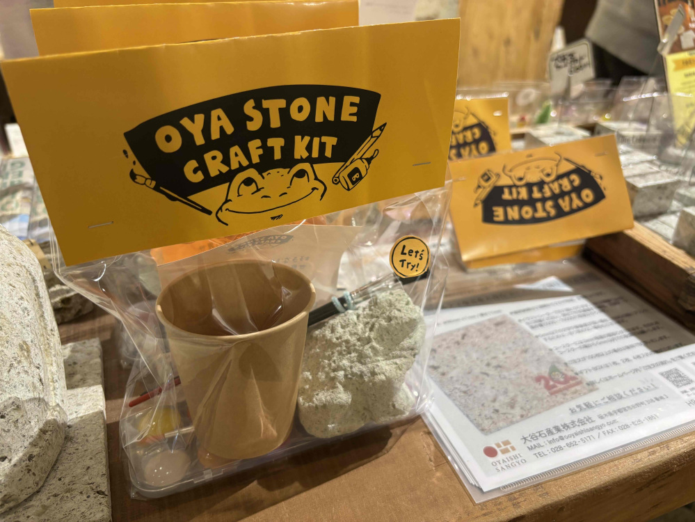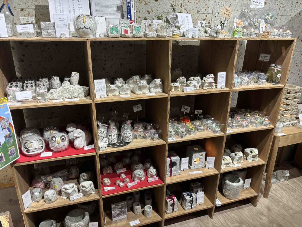 そのほかにも、様々な大谷石の作品が売っていたり、大谷石のかえるの色塗りの製作キットなども販売されていました。