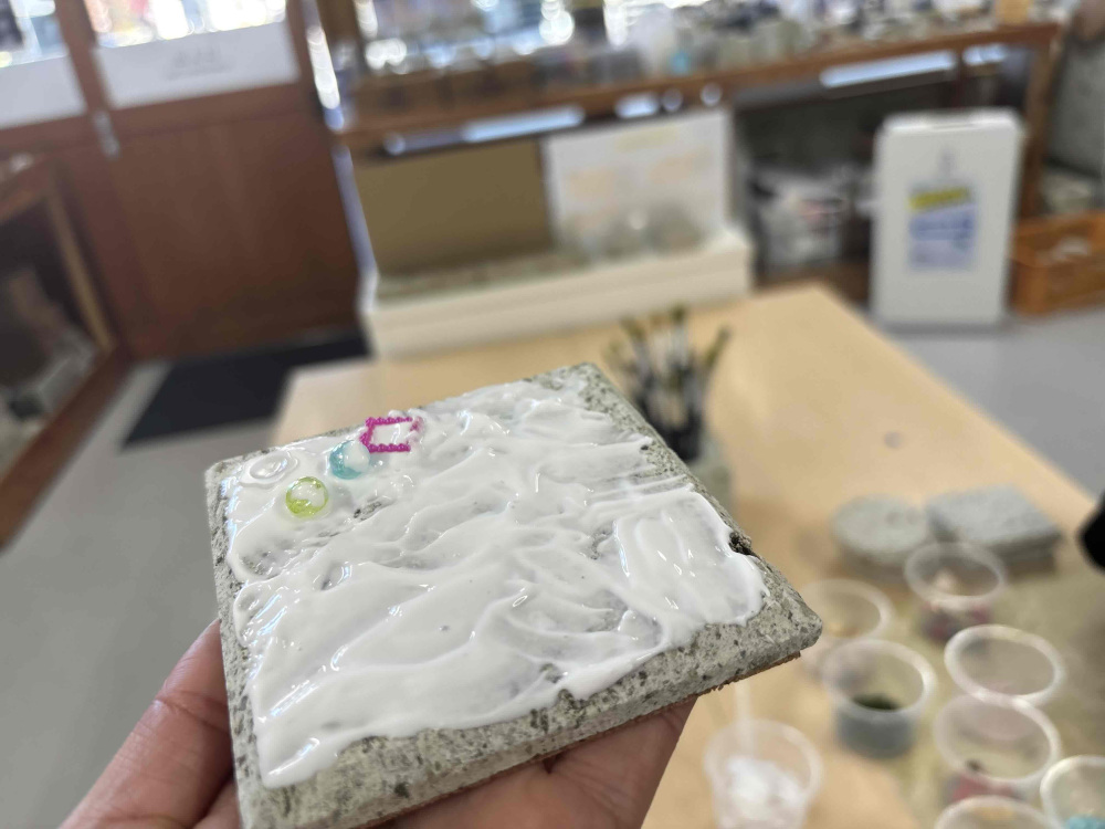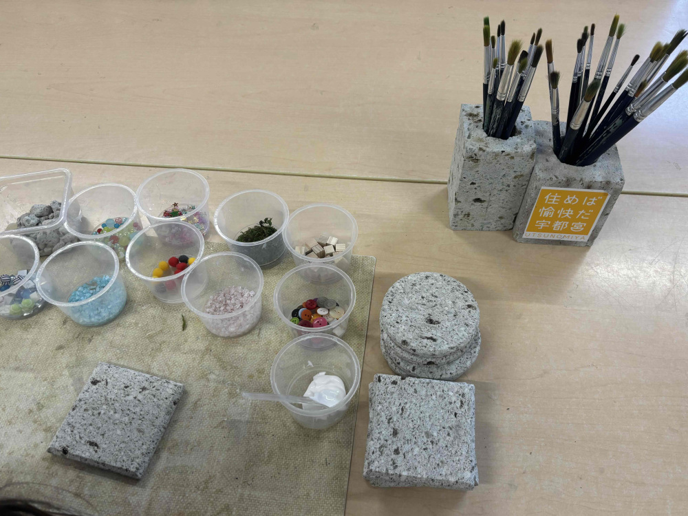 - 大谷石のコースターに自分が好きな絵を描いていきます。1,100円