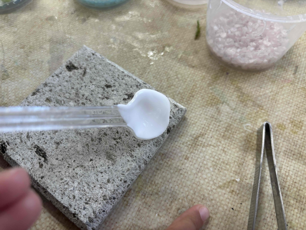 塗るときは白いボンドですが、次の日には乾いて透明になります。塗りすぎても大丈夫です!