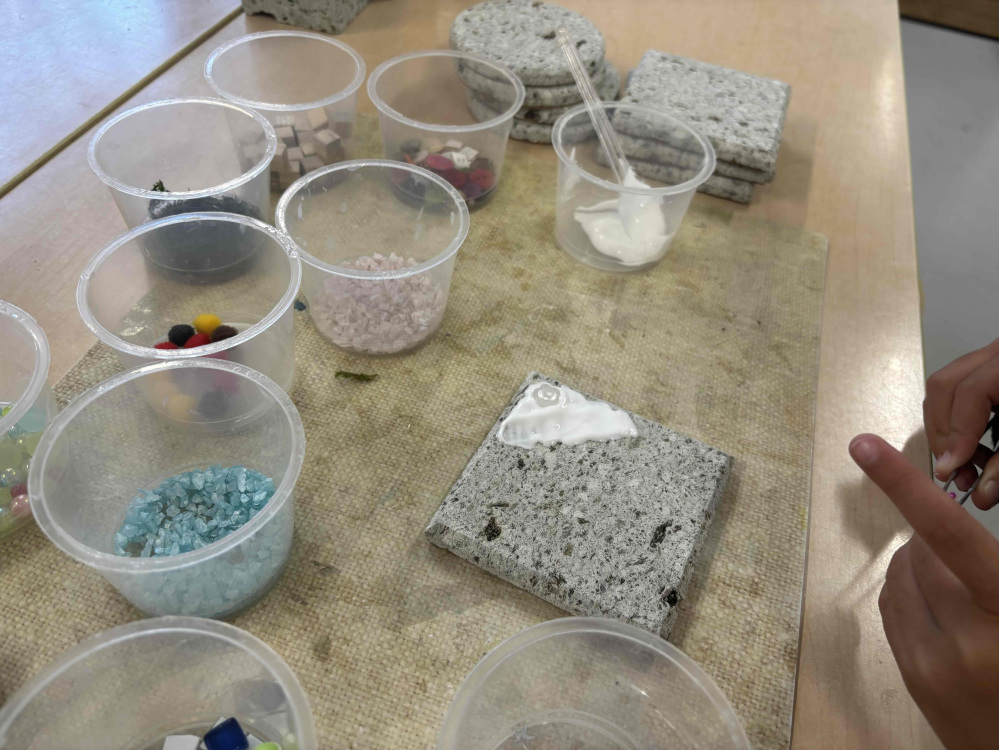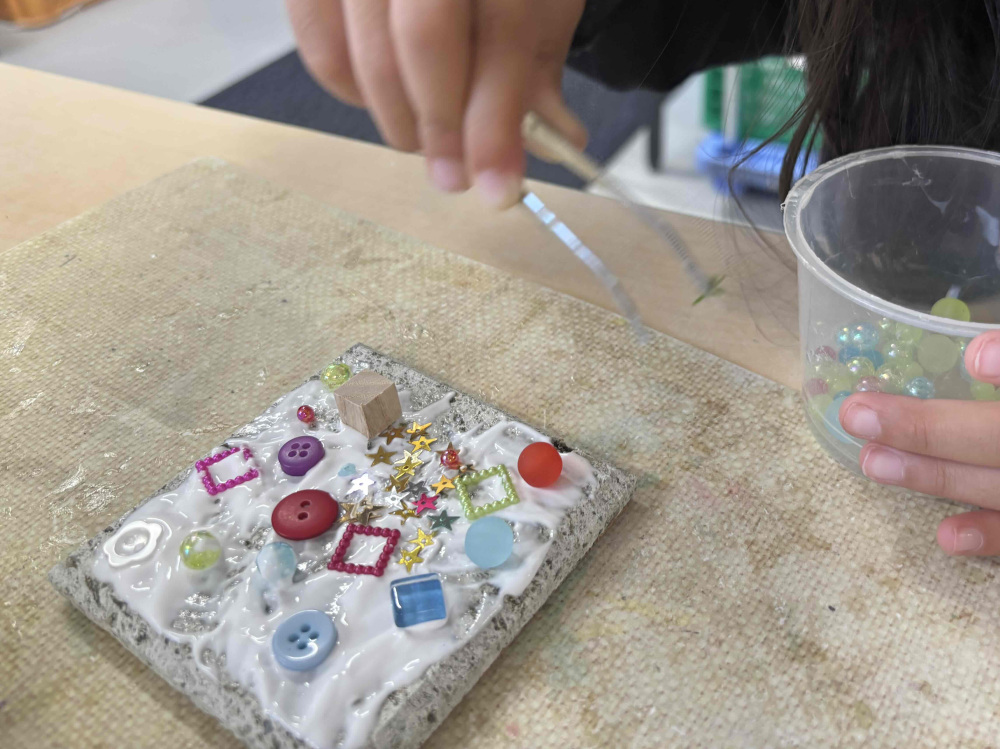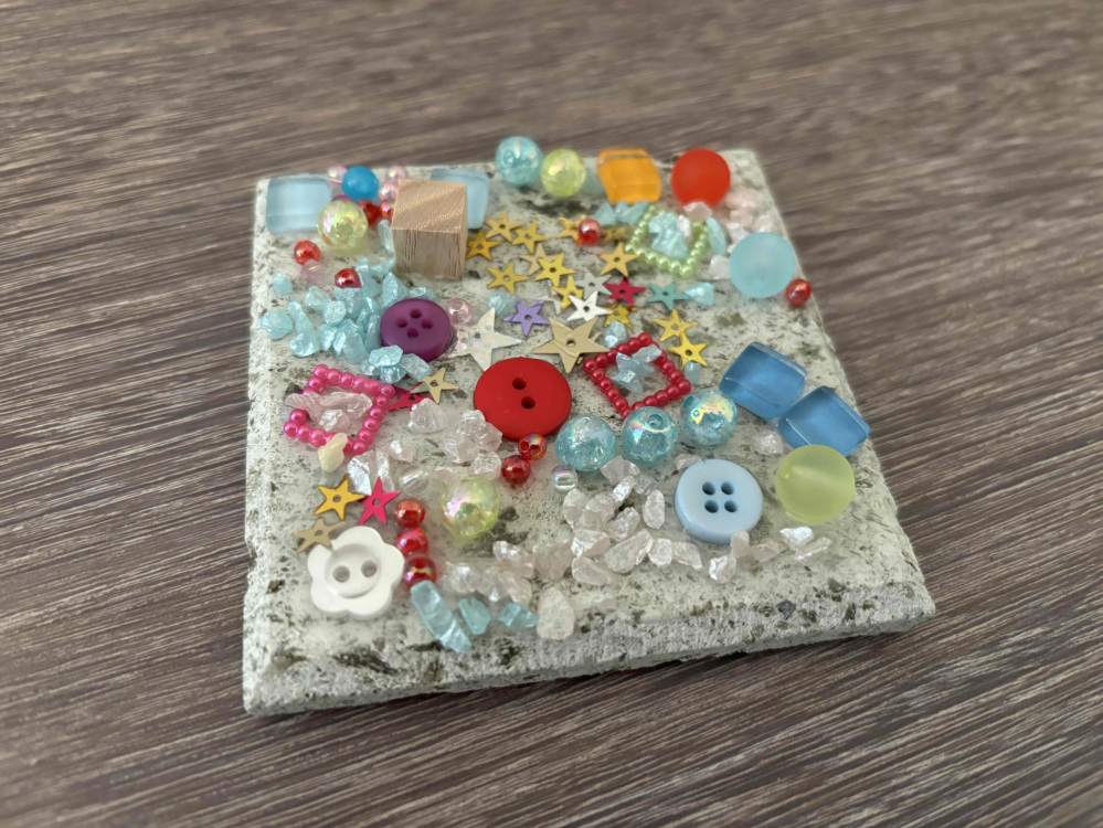 - 大谷石のコースターに立体的な材料を貼って作る3Dデコレーションしていきます。1,380円