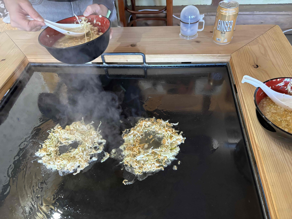生地だけのものから、キャベツとあげだまが入っているもんじ「ひるもんせっと」などがあり、好みで駄菓子で売っている「ぶためん」や「ベビースターラーメン」などトッピングとして入れることもできます!