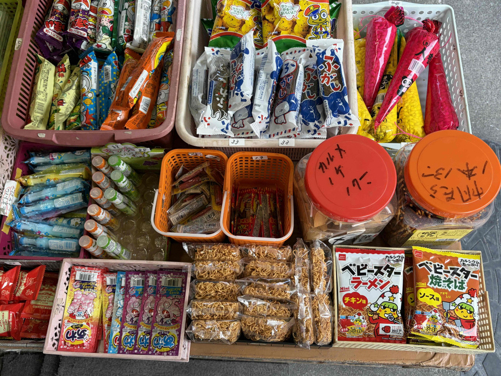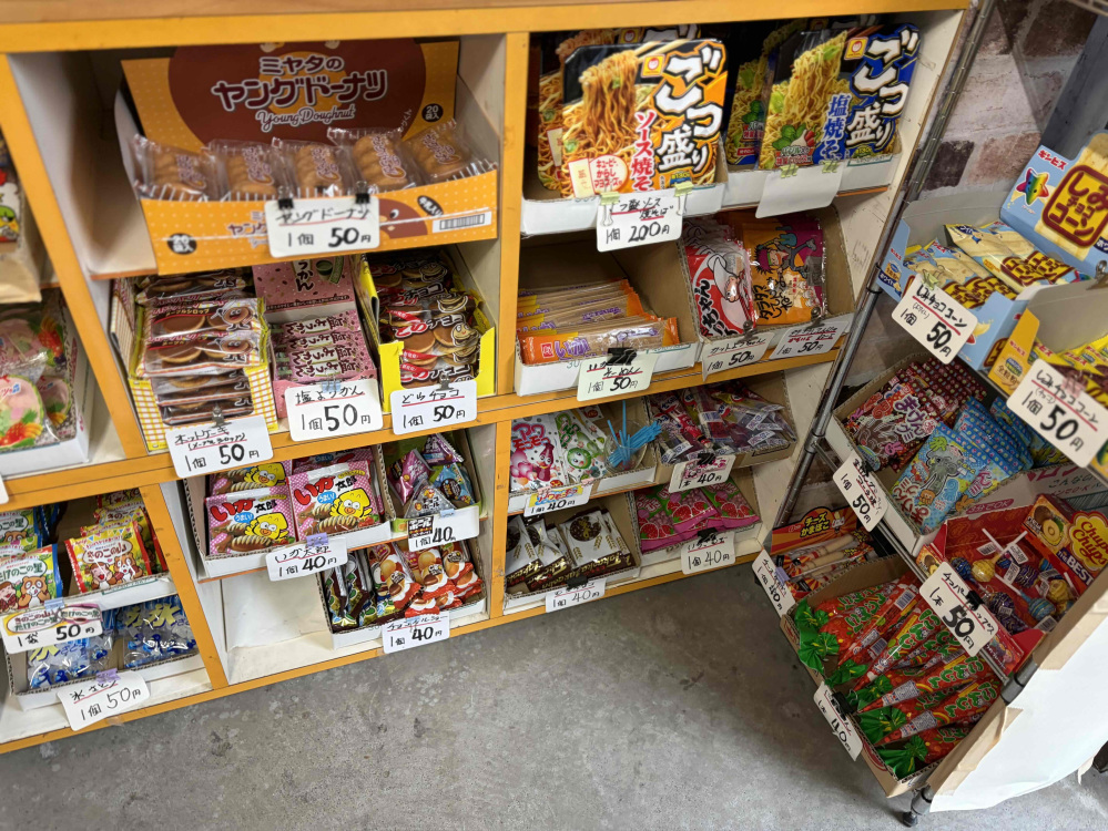 お店には、いろいろな駄菓子や、カップ麺、飲み物、アイスなどいろいろなものが売っています。