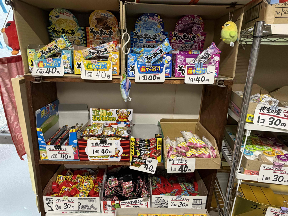 昔はもんじゃ焼きやおでんも販売されていましたが、今は駄菓子をメインに販売されています!