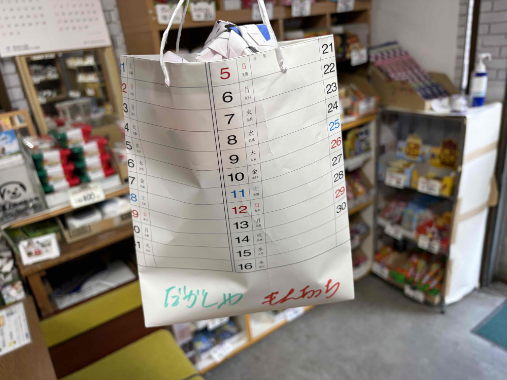 駄菓子を買って、持ち帰るときの袋がカレンダーなどで手作りされたお手製の袋で驚きでした!
