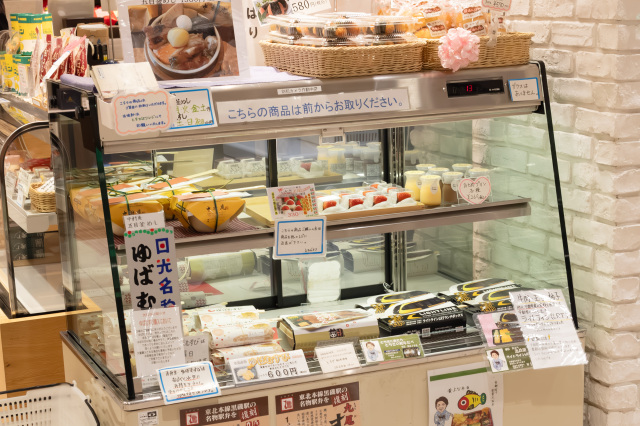 - 朱色の外観が目印で、お弁当をはじめ栃木県のお土産なども取り扱っています。