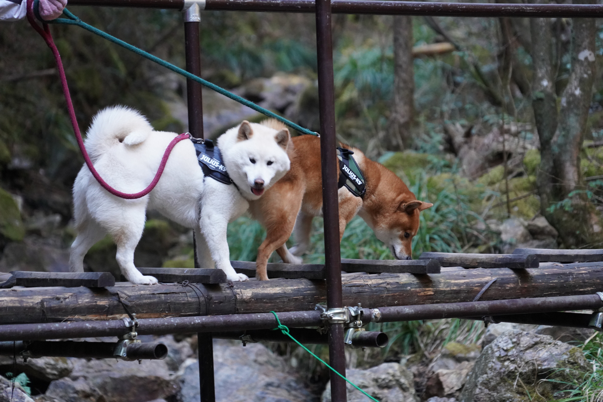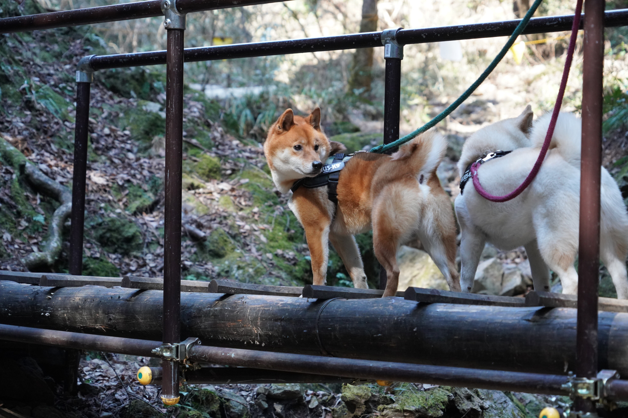 右岸(上流から下流を見た時の右側)から左岸に渡る箇所には丸太橋が架けられているので、渡渉の装備は必要ありません。