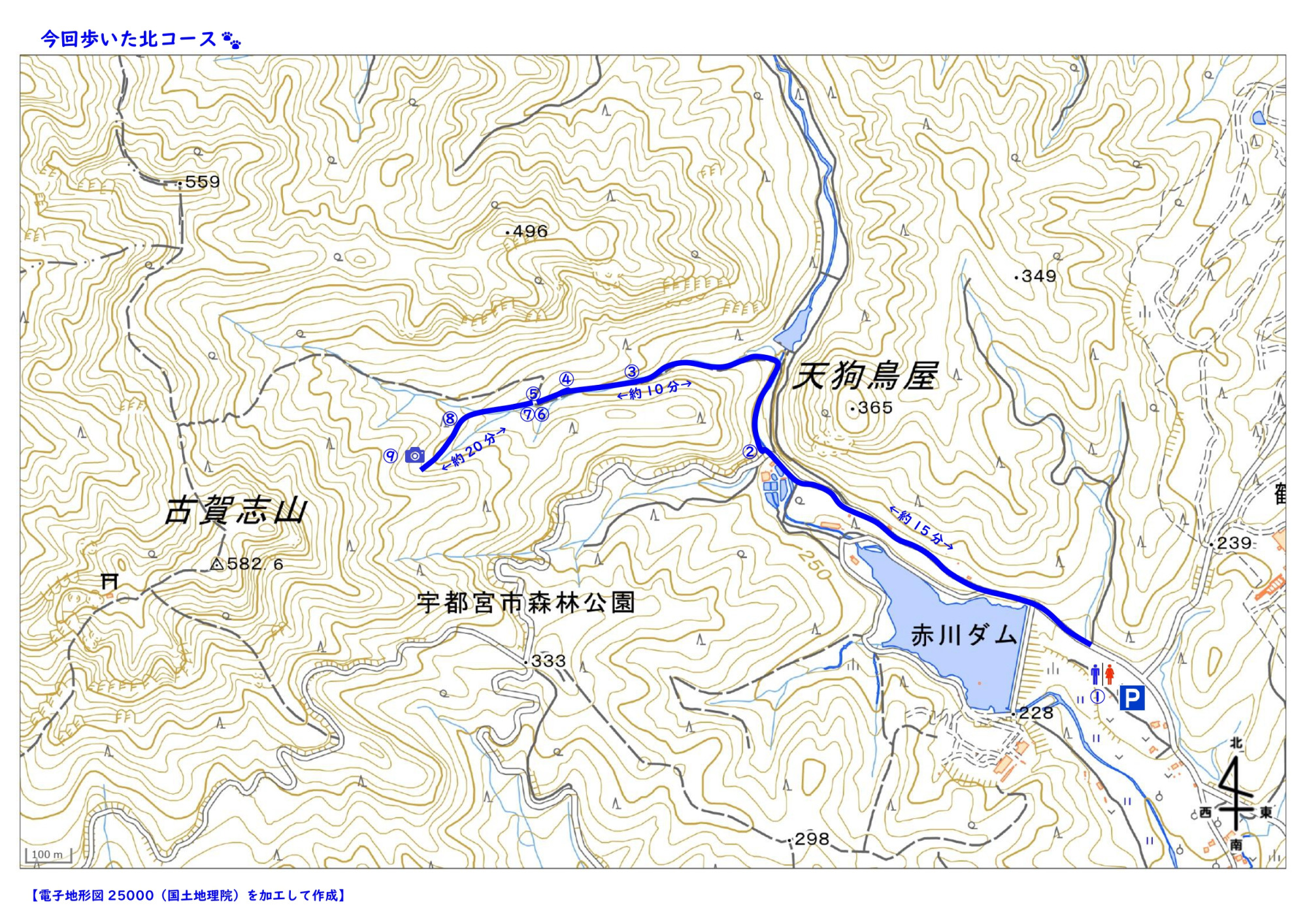 ②赤川ダムに沿って歩き、柴山橋から「北コース」に入ります
