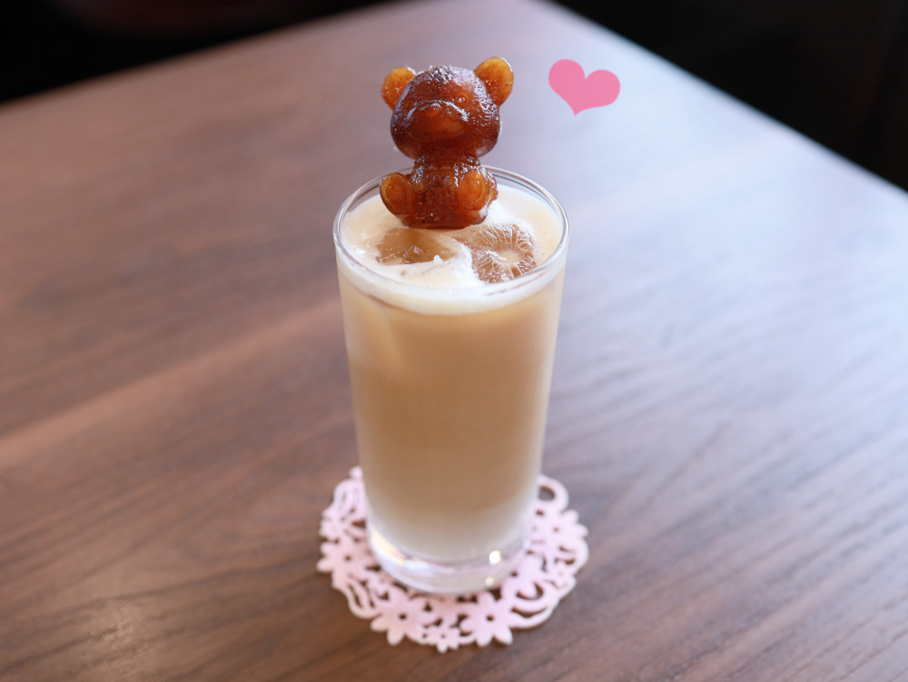 また、ドリンクのアイスコーヒーやアイスカフェラテには、これまた可愛いくま型のコーヒー氷が付いてきて胸キュン!コーヒー氷なので味が薄まりにくく、最後まで楽しめるところもわたしのお気に入りです。