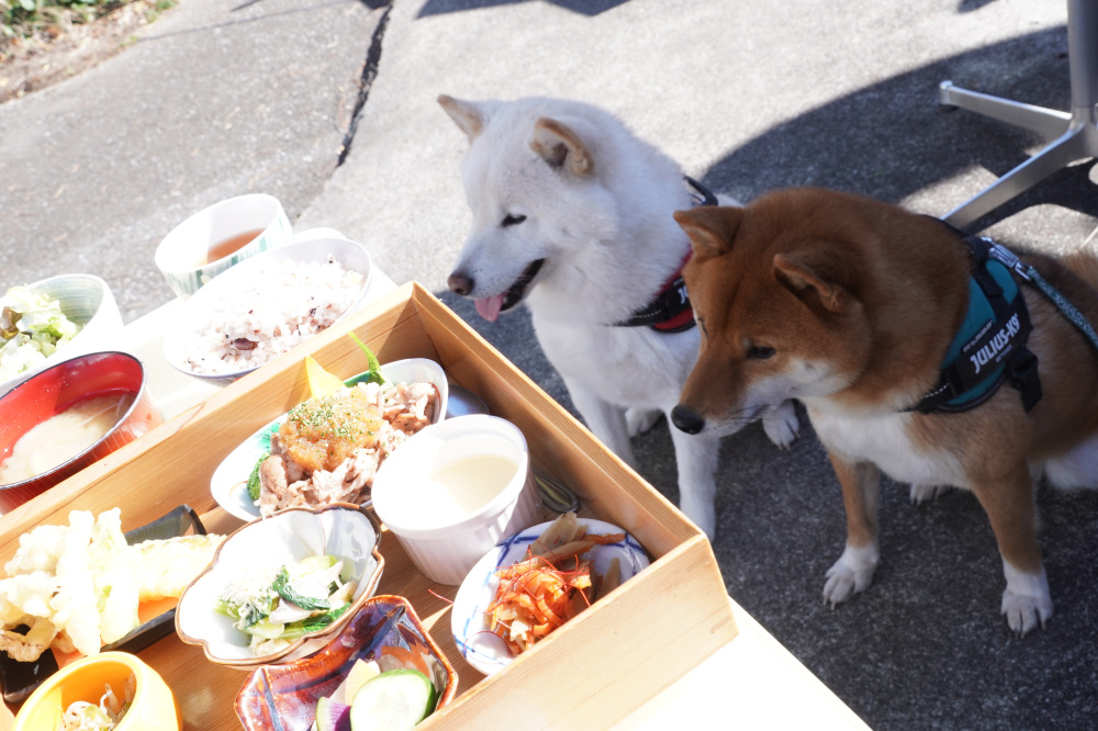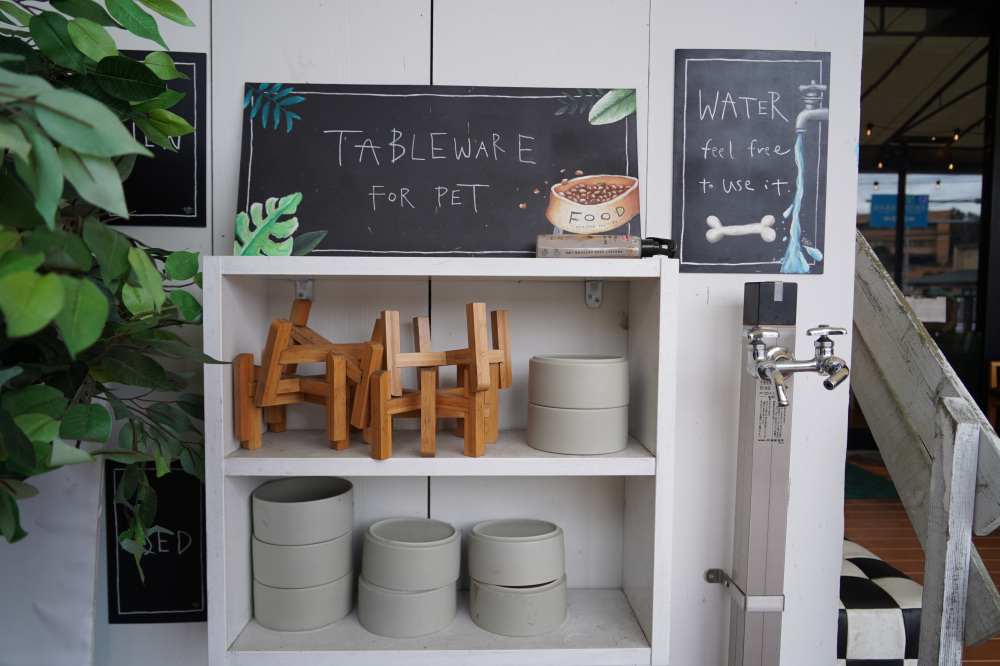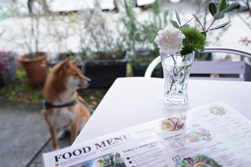 - ワンちゃん専用メニューや水飲みボウルが用意されていて至れり尽くせりだね!入口にある「TERRACE DOG OK」の看板も分かりやすいね!