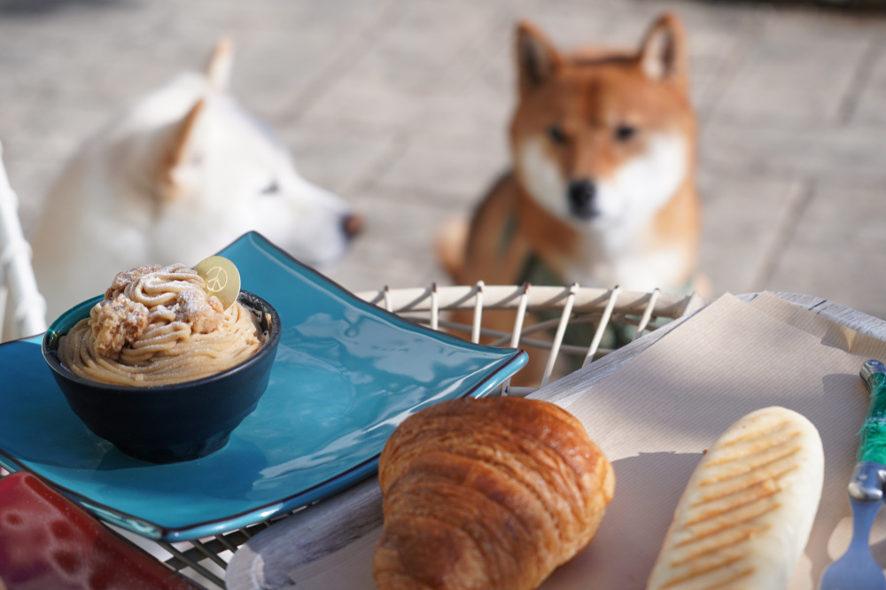 - 人気ベーカリーのテラス席がペットOKなのは嬉しい限り。駅東公園のすぐ近くなので、散策しながら立ち寄るのも◎