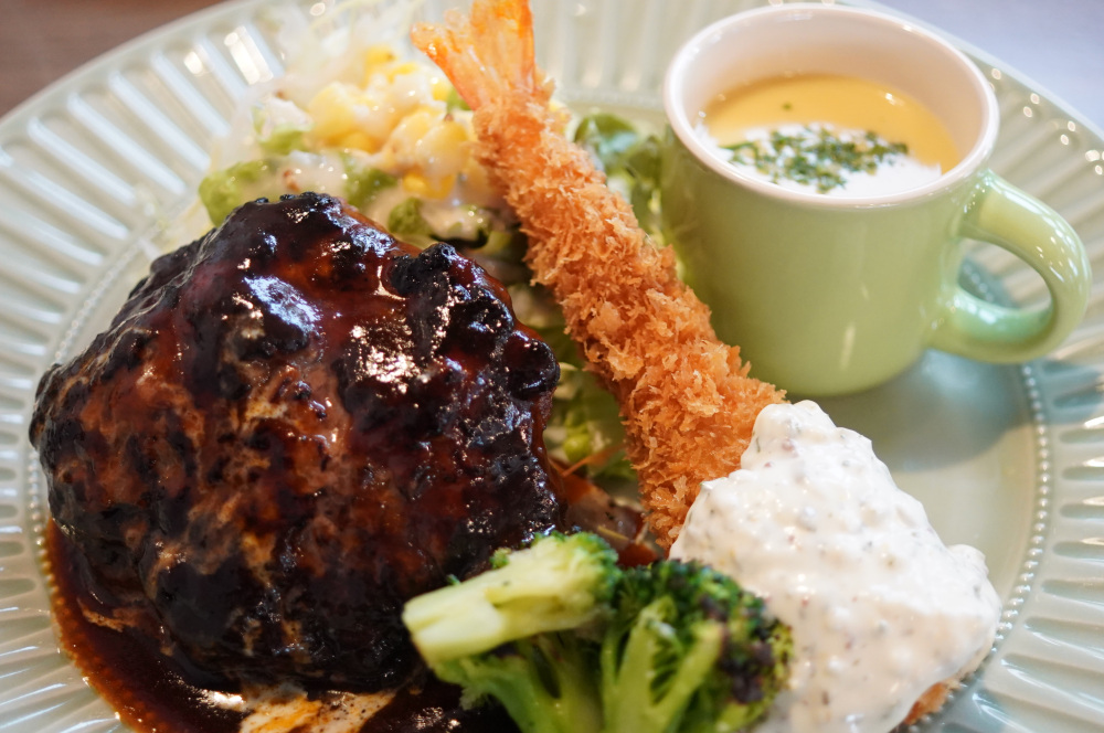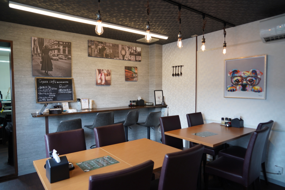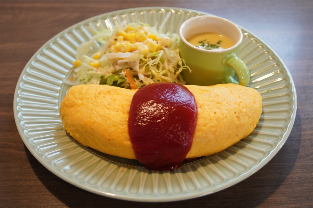 一つ一つ手包みした大きな究極餃子や、オムライスやハンバーグ、ナポリタンなどのセットメニューが揃い、コーヒーメニューも充実。ランチにおすすめのカフェ。