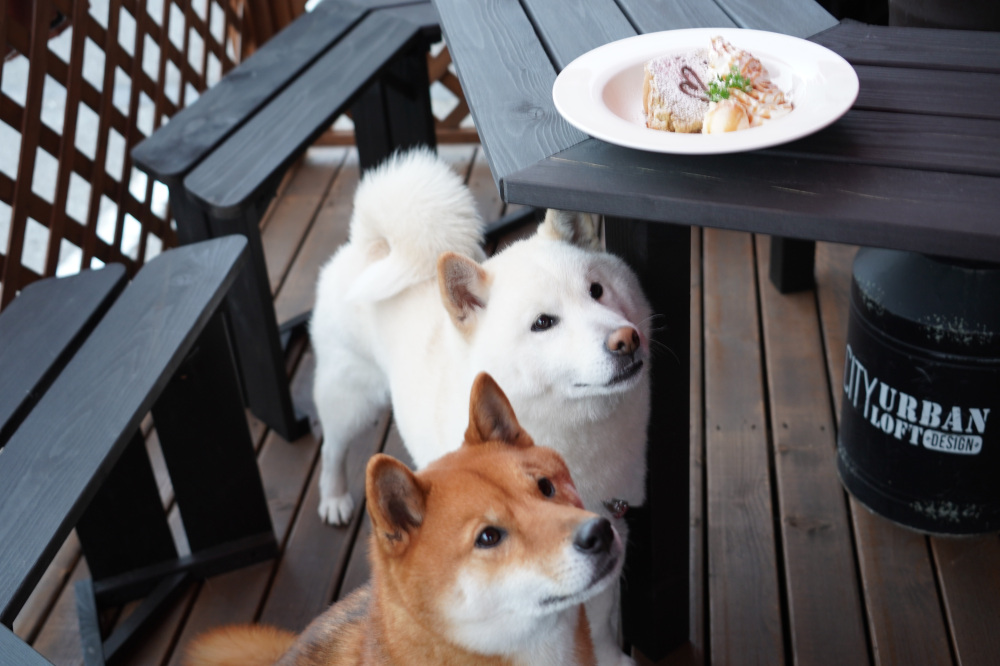 - わんちゃん用の水飲みボウルを用意いただけるのは嬉しい。おやつをいただけることもあり、再訪したくなるね♪