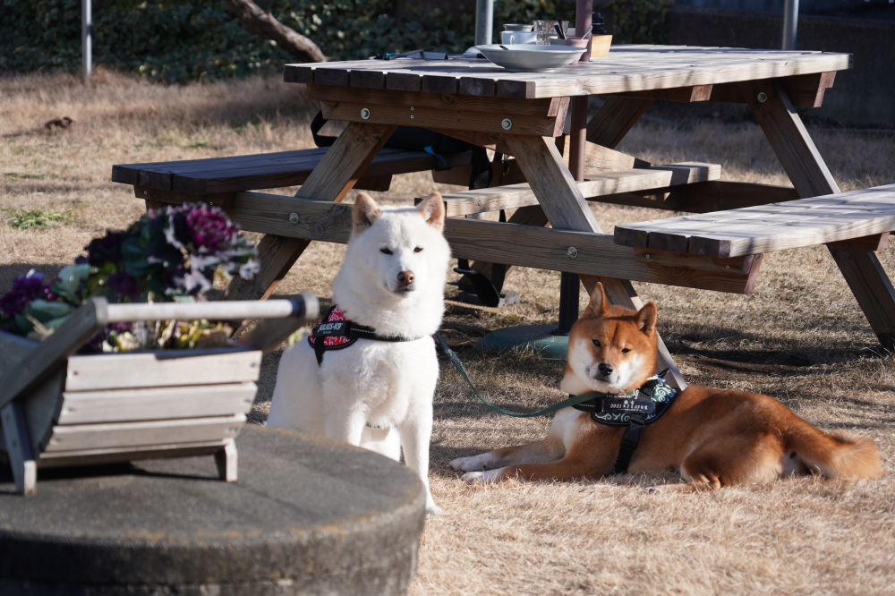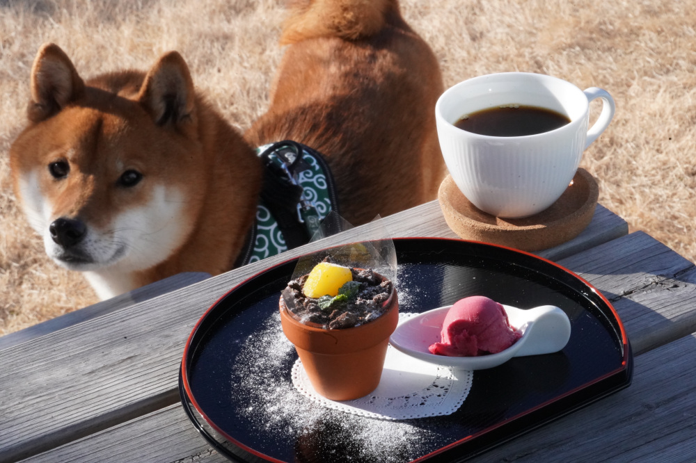 - 看板犬のスカイ(柴犬)です。カフェ利用だけもOKなので、ぜひお越し下さい。