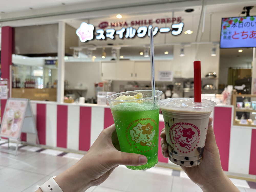 宇都宮駅の隣接ビル、トナリエ宇都宮1階「みやのスマイルクレープ」はクレープやタピオカドリンクを扱うお店で、ドリンクカップには宇都宮市のマスコットキャラクター【ミヤリー】がデザインされています!サツキの冠がかわいいですよね。ドリンクも、タピオカ以外にもたくさん種類があったのでホッと一息休憩にいかがでしょうか?