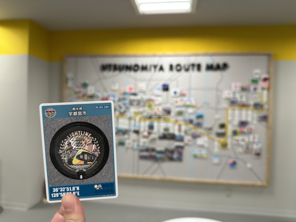 3枚目の写真背景の宇都宮ルートMAPには、子供たちの絵が飾られていてとても可愛かったです。マンホールカードを受け取る際にはぜひ実物をみて見てください。