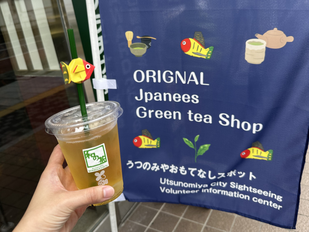 マンホール蓋近くの『関口園 本店』で味わえる黄ぶな茶は、銘茶関口園オリジナル茶にレモンが入ったお茶。お好みでガムシロップを入れても美味しいです。黄ぶなの折り紙がストローに刺さっていてかわいい♡ 流行りのアイドル水がこんなに身近にあったとは!!ぜひご賞味ください。
