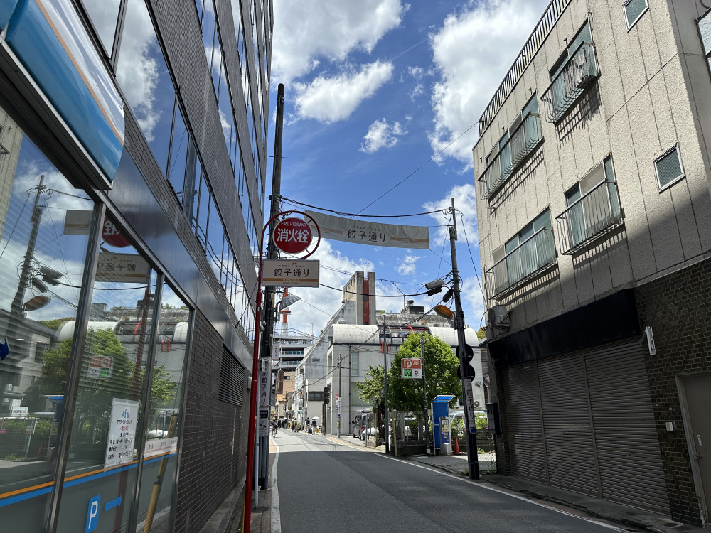 宇都宮の餃子屋が軒を連ねる観光スポットで、外灯が餃子の形をしていたり、大谷石でできたフォトスポットや餃子の壁画など餃子だらけの通りです。