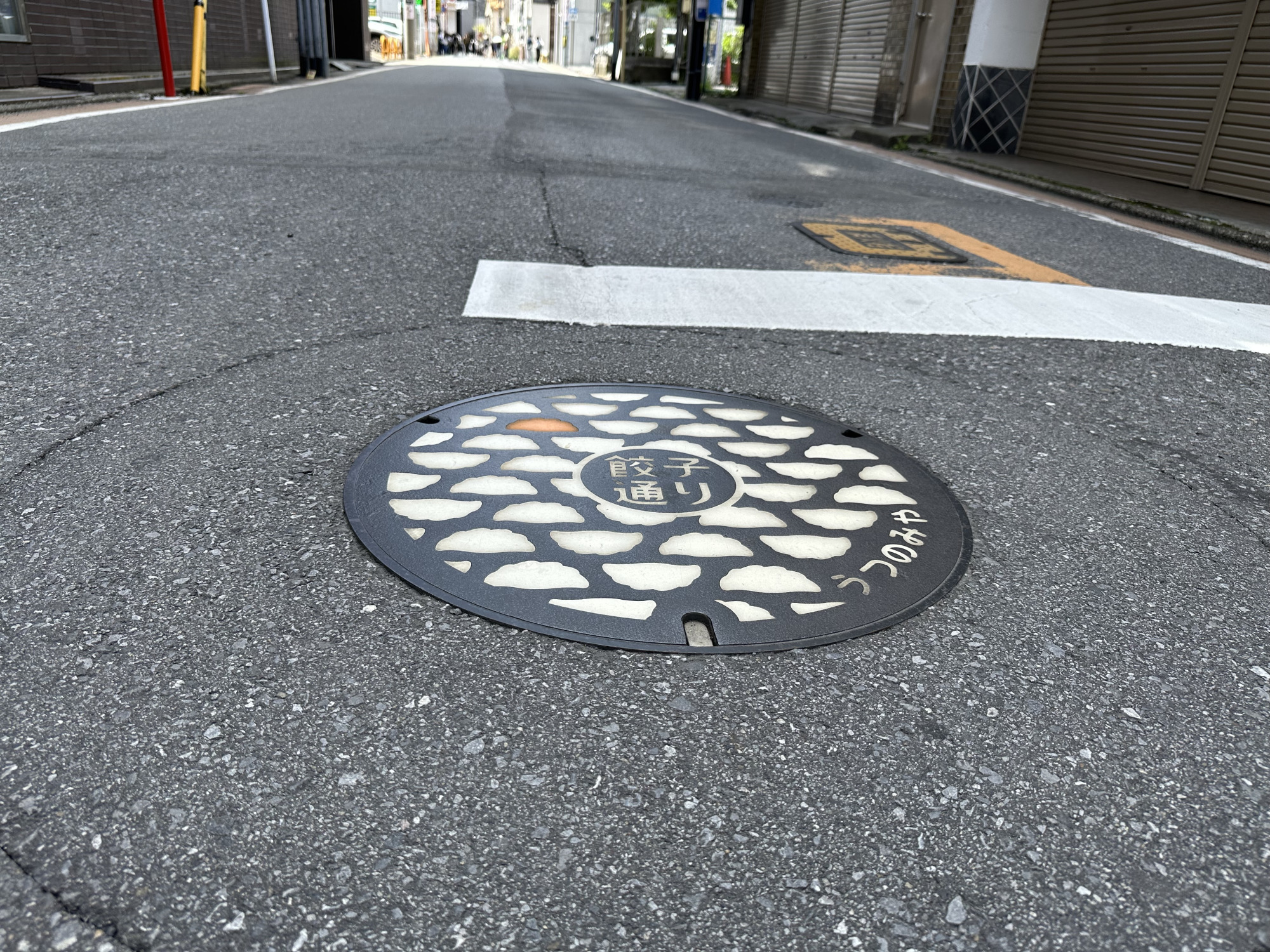 餃子通りのマンホール蓋は2018年に設置され、「古き良き昭和」がコンセプトなんだとか。一つだけ色づいている餃子は「焼」でこんがりと美しい焼き上がりや香ばしさ、凝縮された旨みを表現しています。宇都宮ならではのデザインですね!