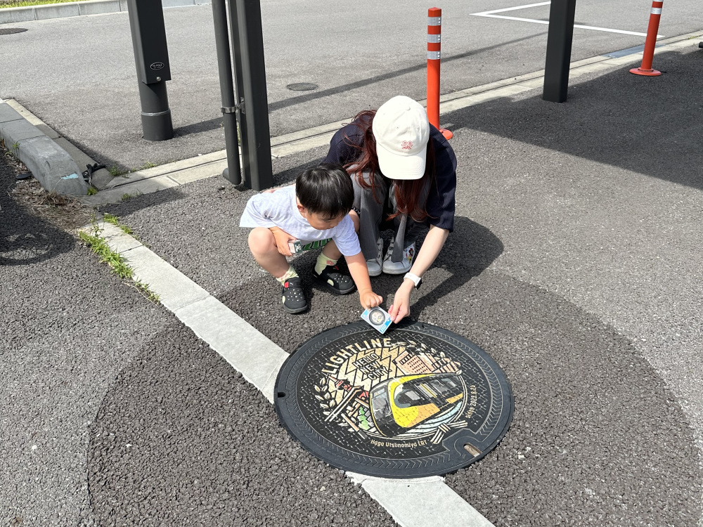 ライトライン(LRT)マンホールカードの配布場所は「うつのみやオープンスクエア」で、駅ビルトナリエの3階に設置されています。この施設にはLRTのグッズやジオラマ、ライトラインに乗って行ける場所の観光案内の他、子供向けに間違い探しチャレンジなど様々なコンテンツが用意されていました。ぜひゆっくり過ごしてくださいね