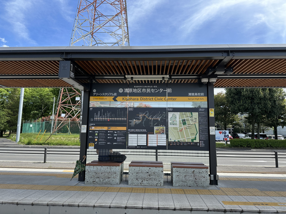 清原地区市民センター前駅で下車するとすぐ近くにあります!ライトラインの移動も楽しくておすすめです♪駅を降りたら公衆トイレ側に渡り、(右手に公衆トイレ)信号を背にして直進します。