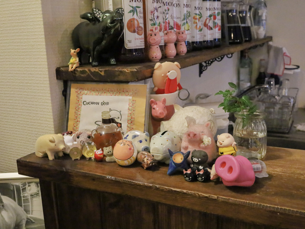 - 小学生の時に可愛い豚のおもちゃを見て衝撃を受けて、そこからずっと豚グッズを集めたり、お客さんから頂いたりなどもあって今のこのような店内雰囲気になってます。