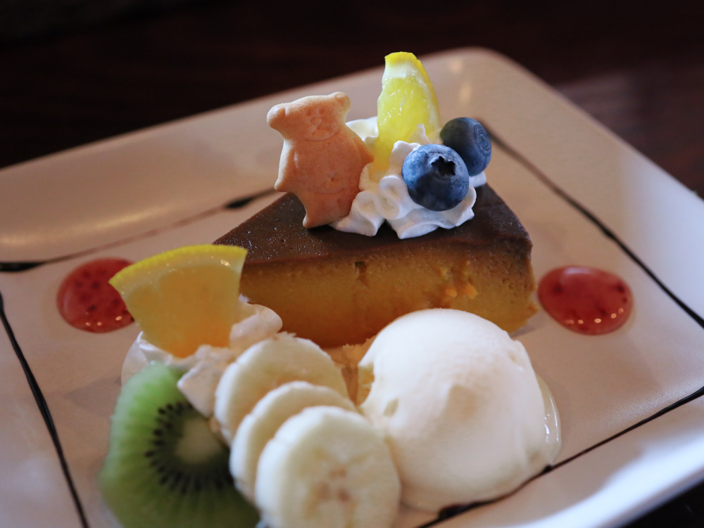 スイーツは創業から変わらぬ味のかぼちゃプリンや季節のフルーツを使ったケーキ類などがあります。