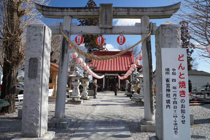 997(長徳3)年八幡太朗義家の創建とされます。雀宮村の鎮守。1713(正徳3)年東山天皇より金文字で「雀宮」と書かれた「勅額」が下賜され、この額が社頭にあるため日光社参の将軍や諸大名は参拝を常としていました。