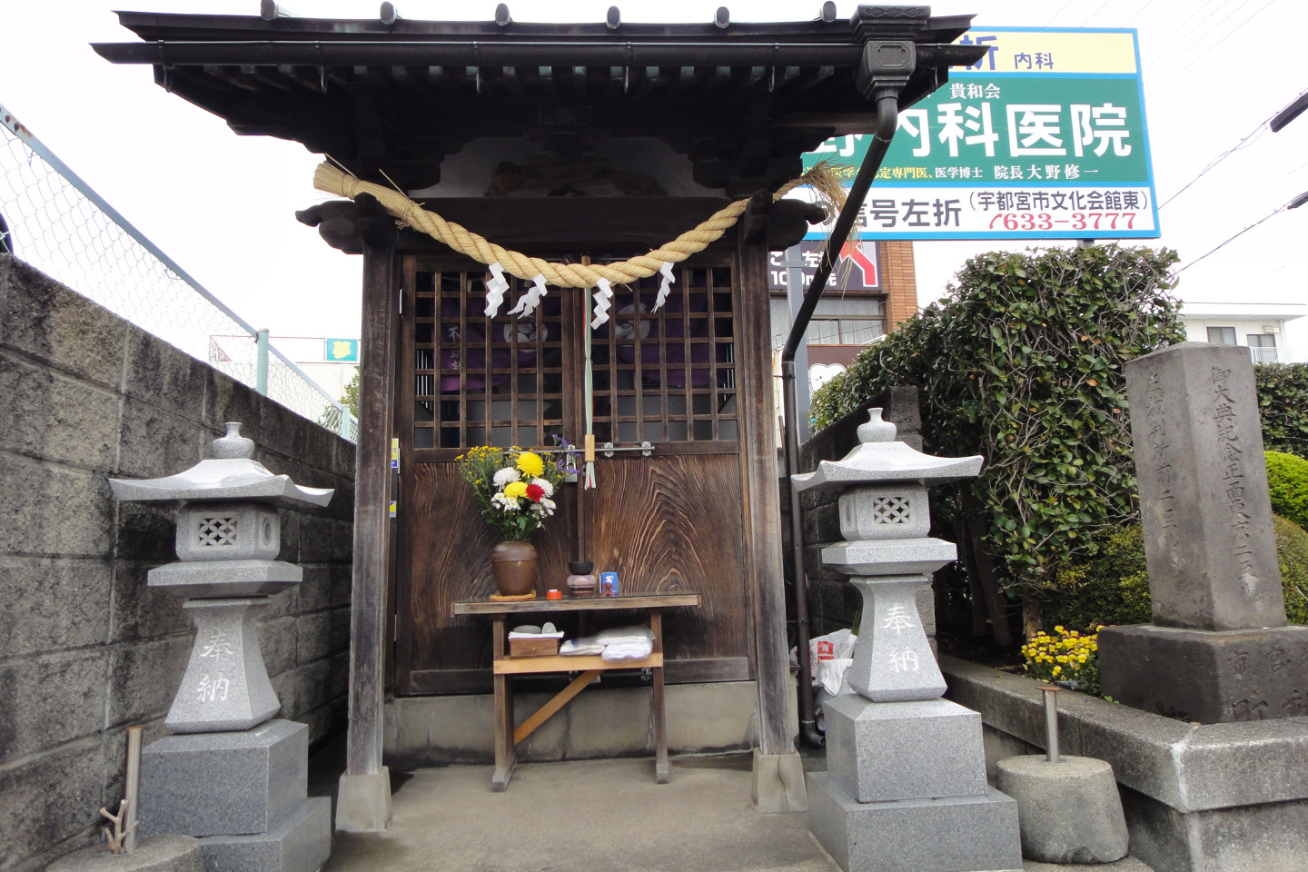 学問の神「菅原道真」を祀る天神社。この辺りは台新田村立場後で高札場があったといわれています。領内の名主や町年寄は当社にて宇都宮藩主参勤の送迎を行ないました。将軍社参の際は境内に仮の御茶屋が設けられたようです。