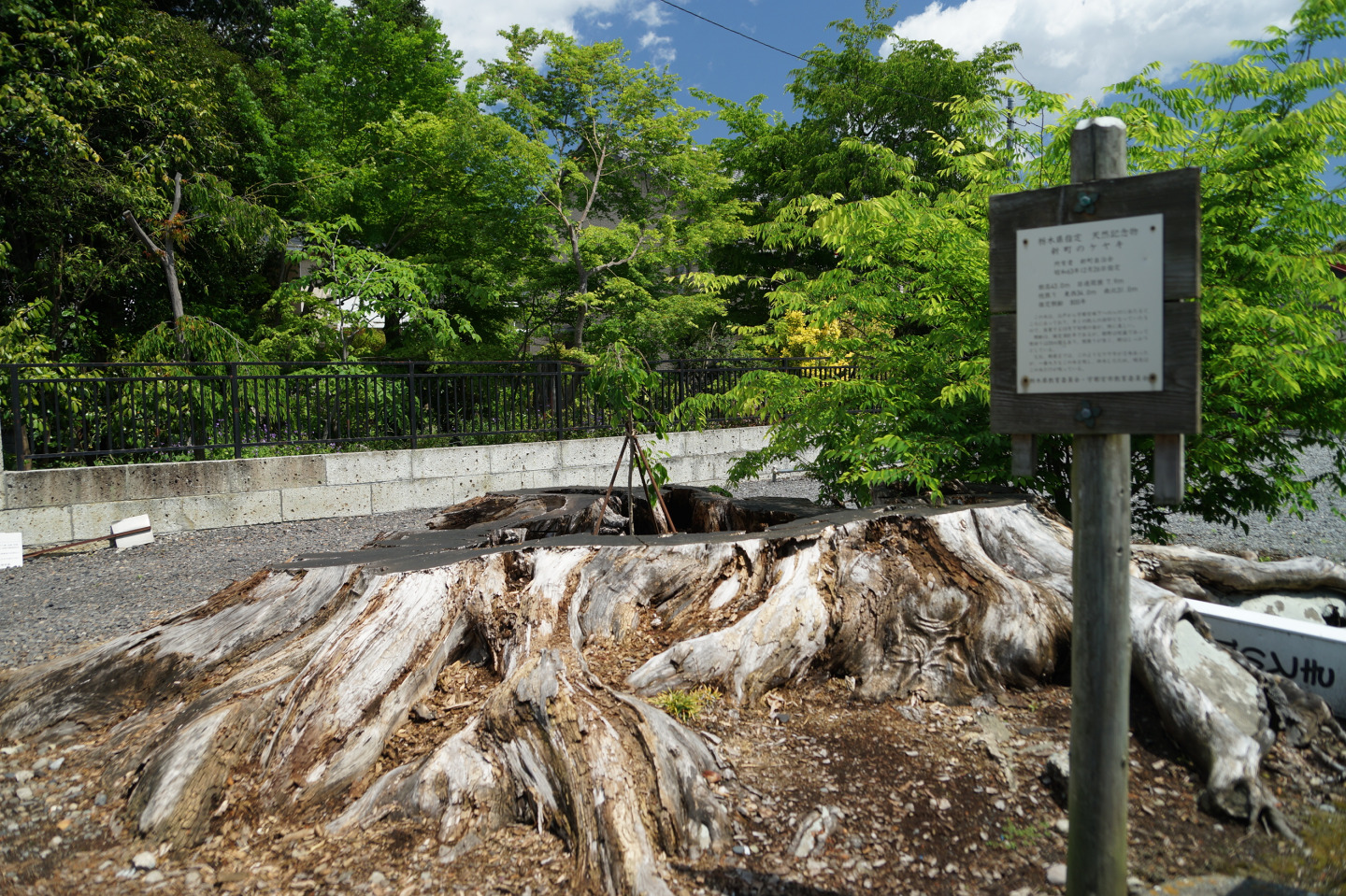 推定樹齢800年で栃木県指定の天然記念物でしたが、2013(平成25)年台風18号で半倒壊し、その後伐採され、現在は切り株が残るのみです。
