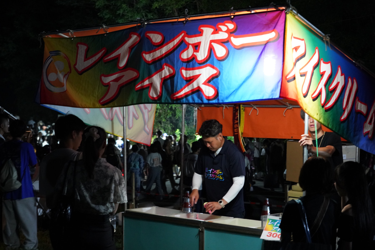 アイスクリームとシャーベットの間のようなさっぱりとした味わいの「レインボーアイスクリーム」は、宇都宮市のすぐ隣、さくら市にある江連商店が商標登録したもので、30年以上前から製造・販売されています。ほんのり香るバニラ・メロン・バナナ・イチゴ・ブルーハワイ・グレープ・オレンジのアイスは、栃木県民誰もが昔お祭りで食べた忘れえぬ味。大人も子どもも食べたくなる一品です。