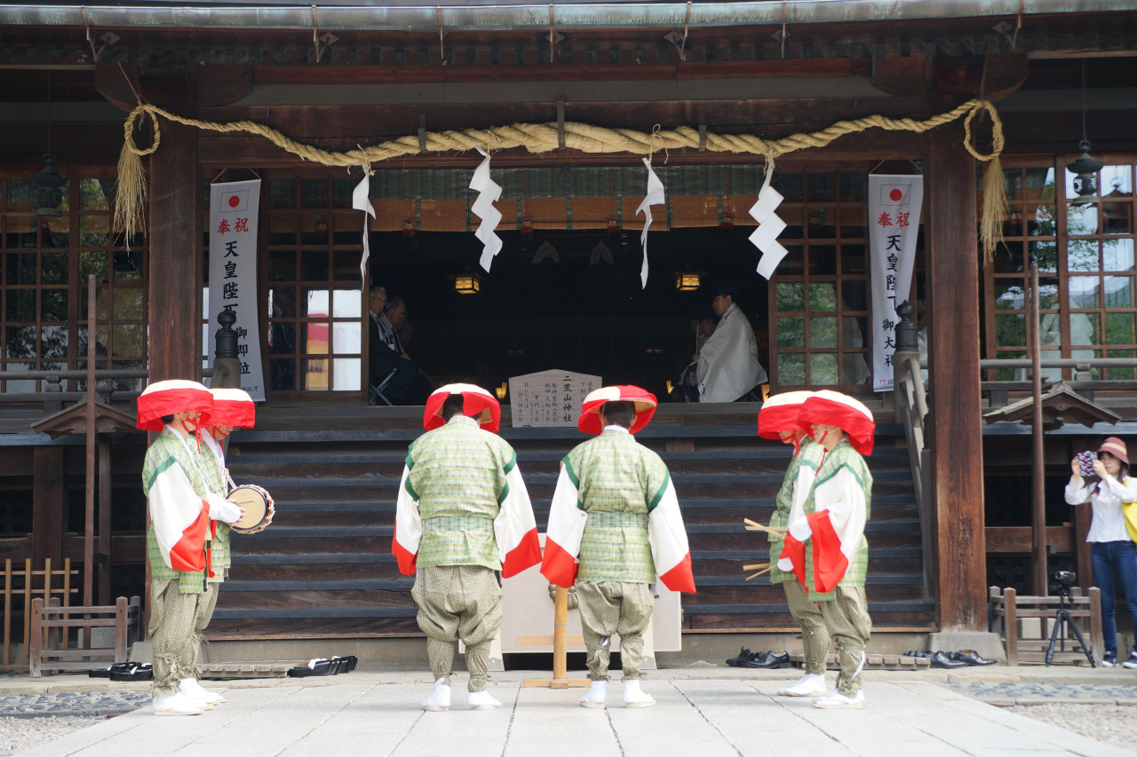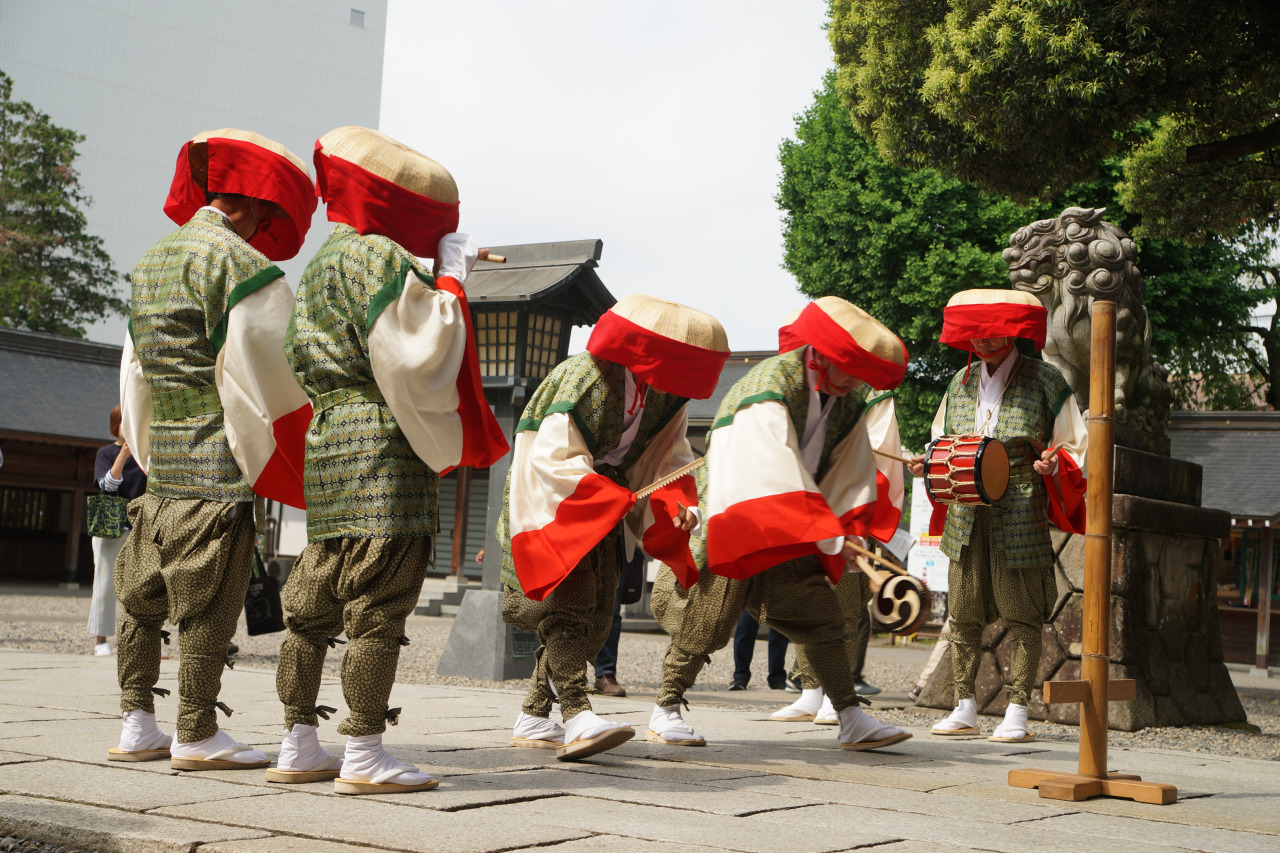 田舞祭は毎年5月15日に二荒山神社で行われる祭りです。田植えの時期にあたり、風水及び虫害無く豊作(五穀豊穣)となるよう願う祭りで、社殿での宮司の祝詞奏上に続き、拝殿前石畳上で「堀米の田楽舞」(宇都宮市指定文化財)が奉納されます。この田楽舞は、平安末期よりはじめられたとされ、中断と復興変遷を経て現在のかたちは江戸時代から伝わるもので、神社の旧神領地であった宇都宮市関掘町の6軒の家に伝承されています。
