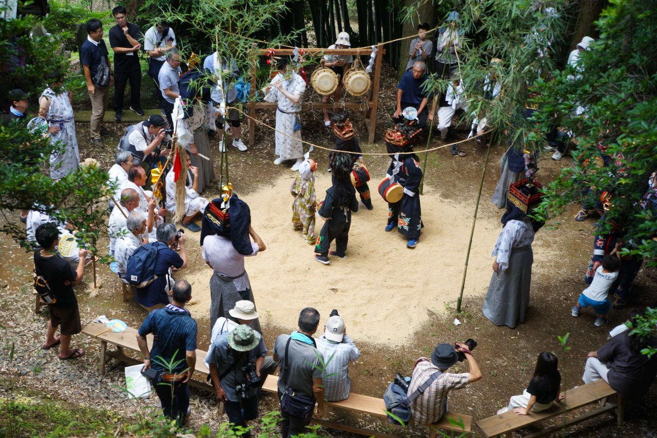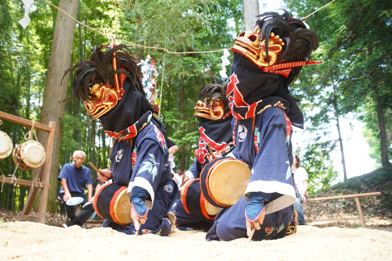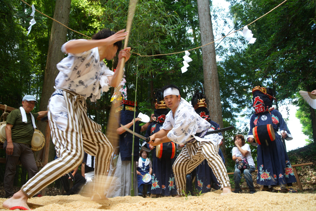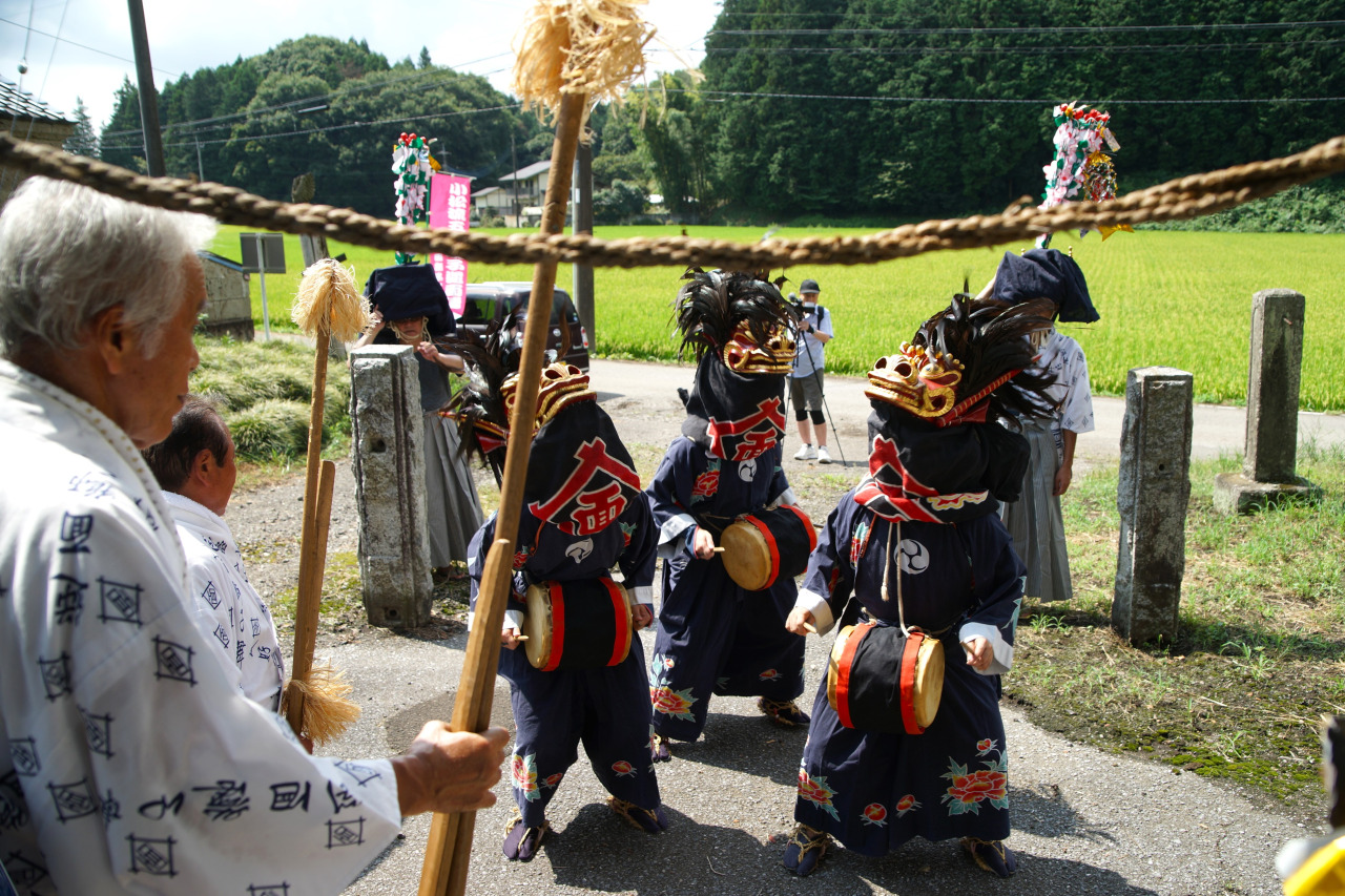 逆面町に中世より伝わる獅子舞で、白山神社の境内で五穀豊穣、子孫繁栄、家内安全を願って奉納され獅子舞です。この逆面の獅子舞は関東地方特有の風流系の一人立ち三匹獅子舞の代表格の獅子舞で、舞の踊り形や姿は関東で2番目と自負しています。獅子舞の日は村中の人が日の出と共に神社に登り、獅子を奉納した後に正午前から夕方まで獅子舞を奉納します。逆面獅子舞の歴史も古く、室町時代初期の1384年~1392年にこの辺り一体がチフスに襲われたときに、この獅子舞を舞って悪霊の退散を願ったところ、チフスはたちどころに胡散霧消したといわれています。以来、逆面の獅子舞は、村寺、高徳(こうとく)寺に在って、逆面人の魂として、地域の守り神として、毎年に村中を清め流し舞われてきたが、明治の廃仏毀釈令により明治15年ごろからは現在の形になりました。