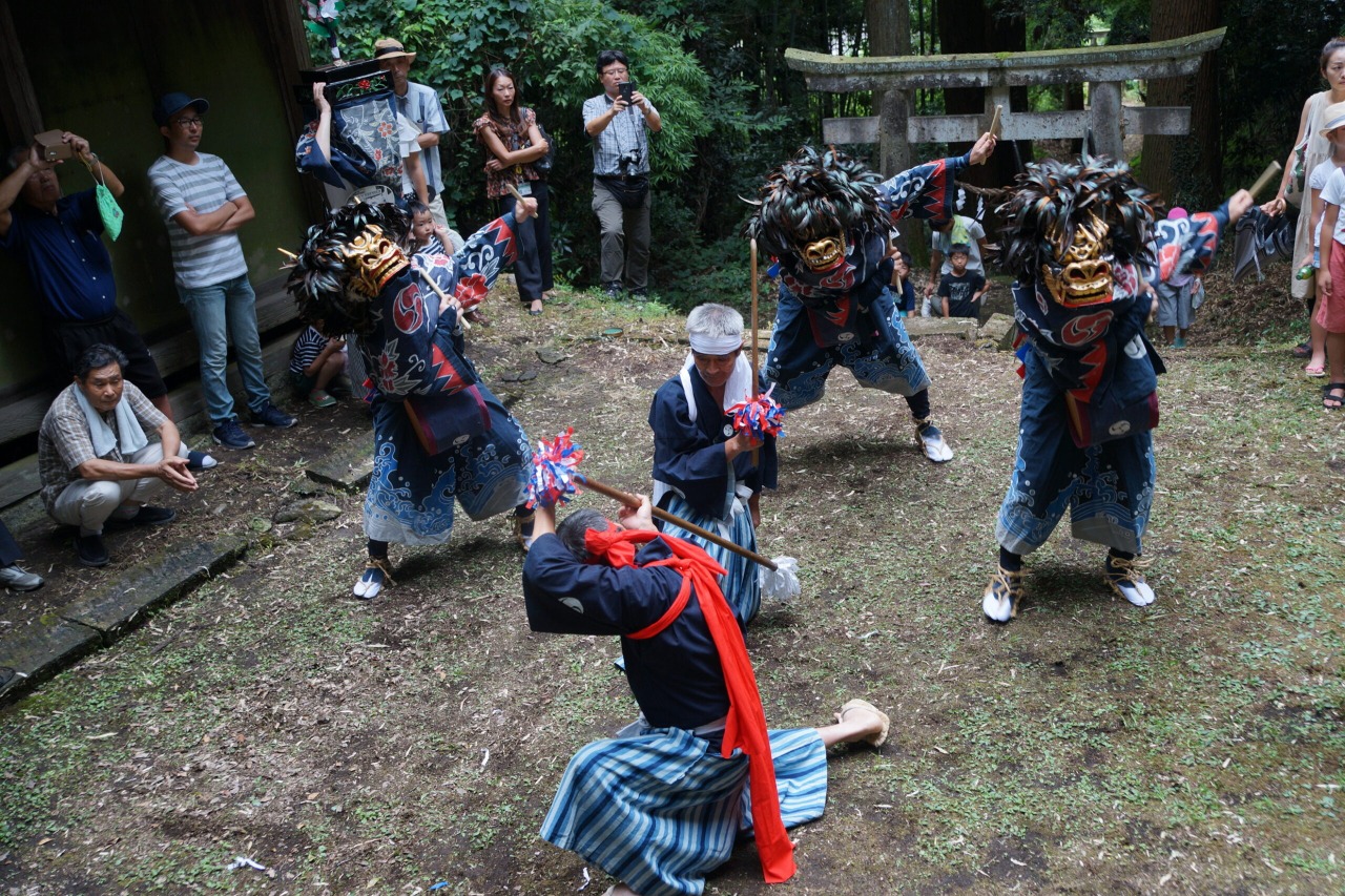 江戸時代に天下一関白神獅子舞から伝授されたもので、中里西組の獅子舞同様に1838年の伝授書が伝えられています。上演は8月15日で、かつては、地鎮祭や橋の渡り初めの時にも獅子舞を舞うことがありました。