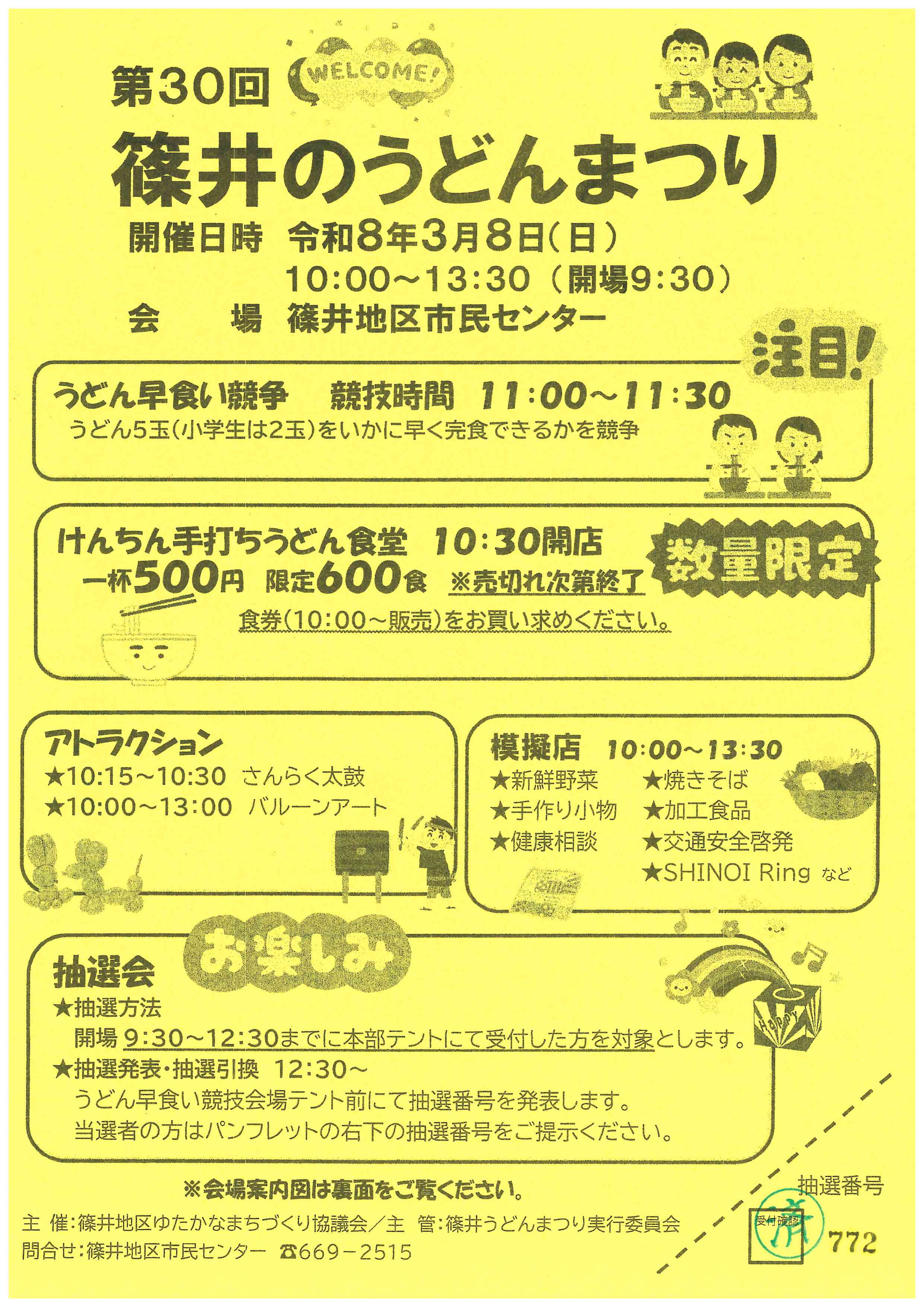 篠井地区の食文化である「手打ちうどん」のPRと地域の活性化を目的としたお祭りです。2026年には第30回を迎えました!