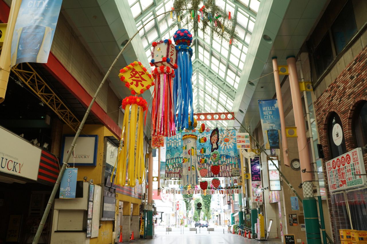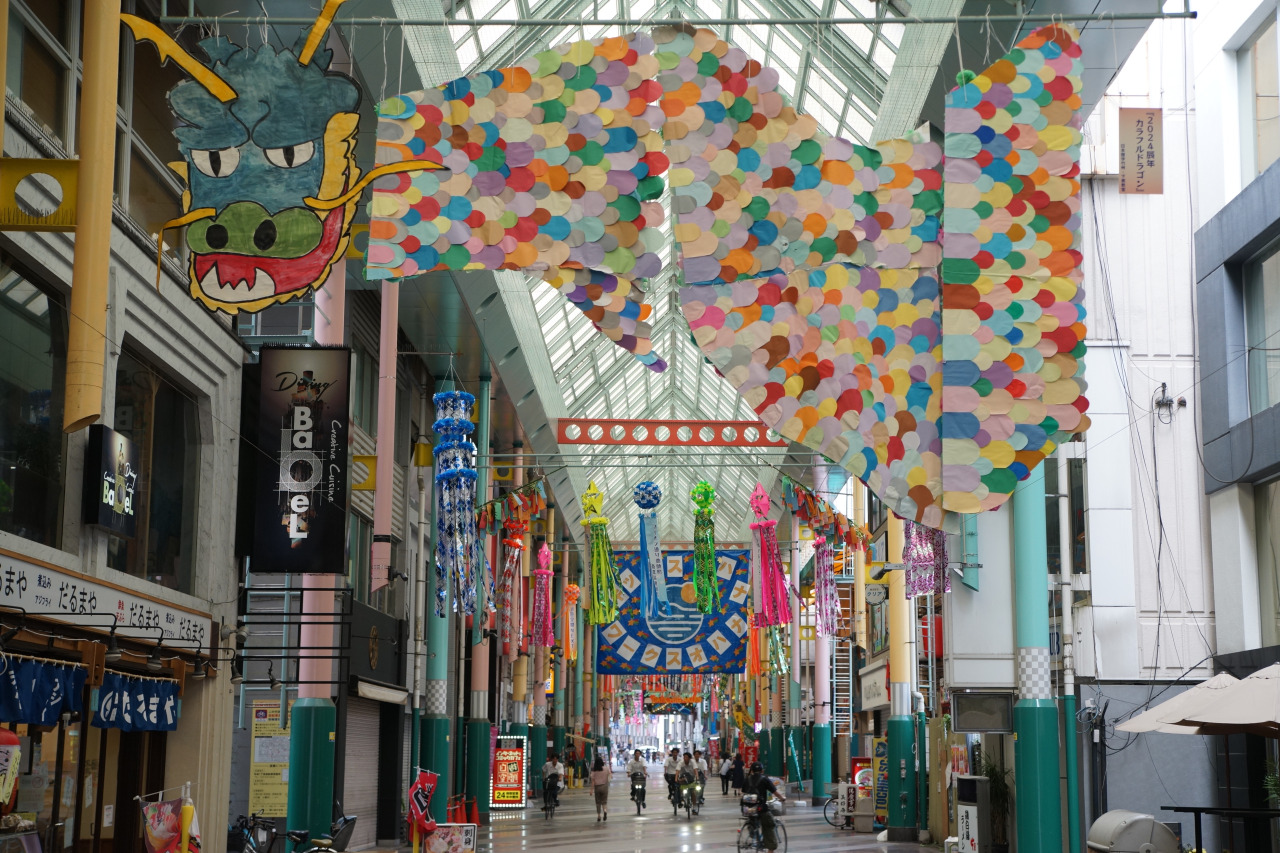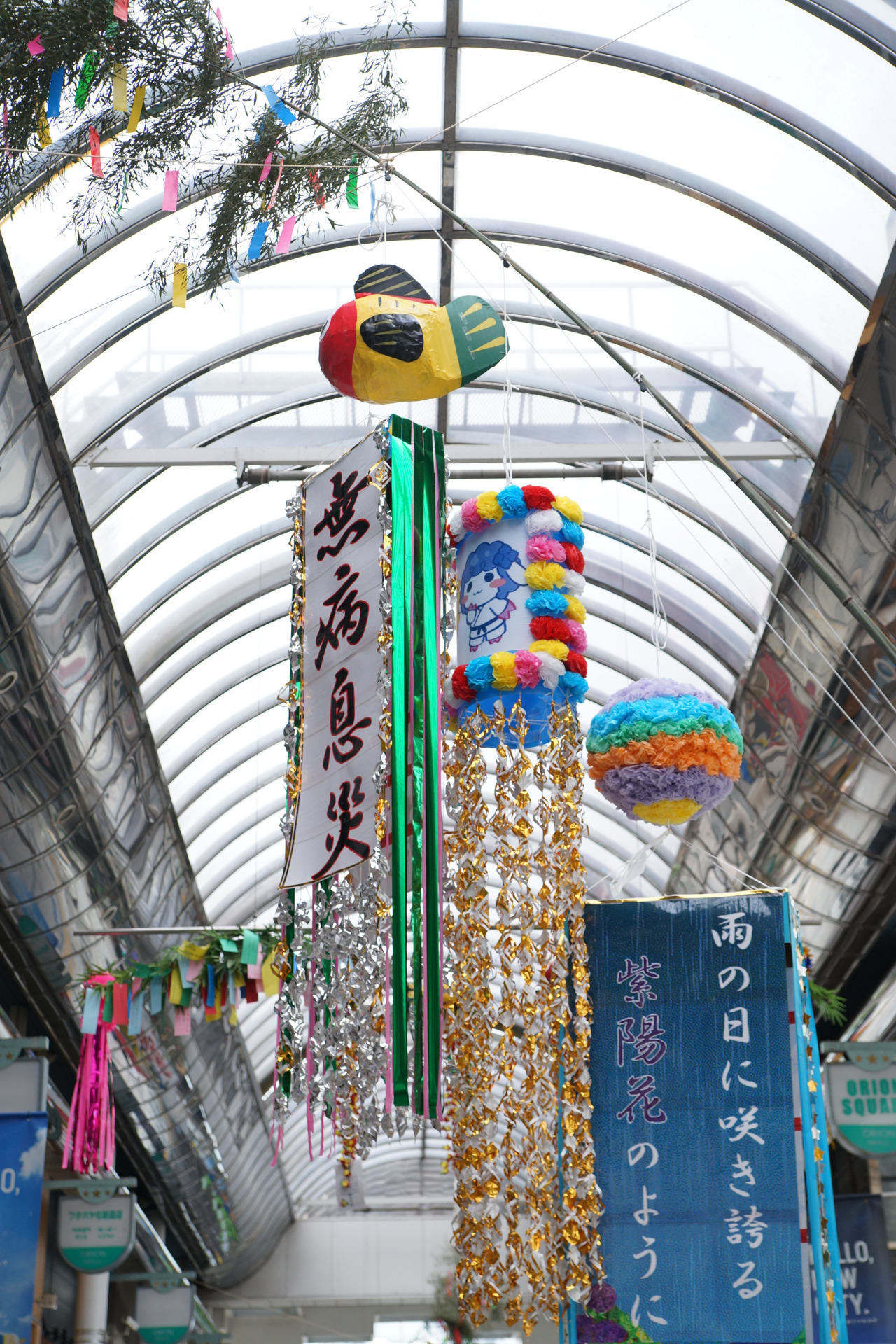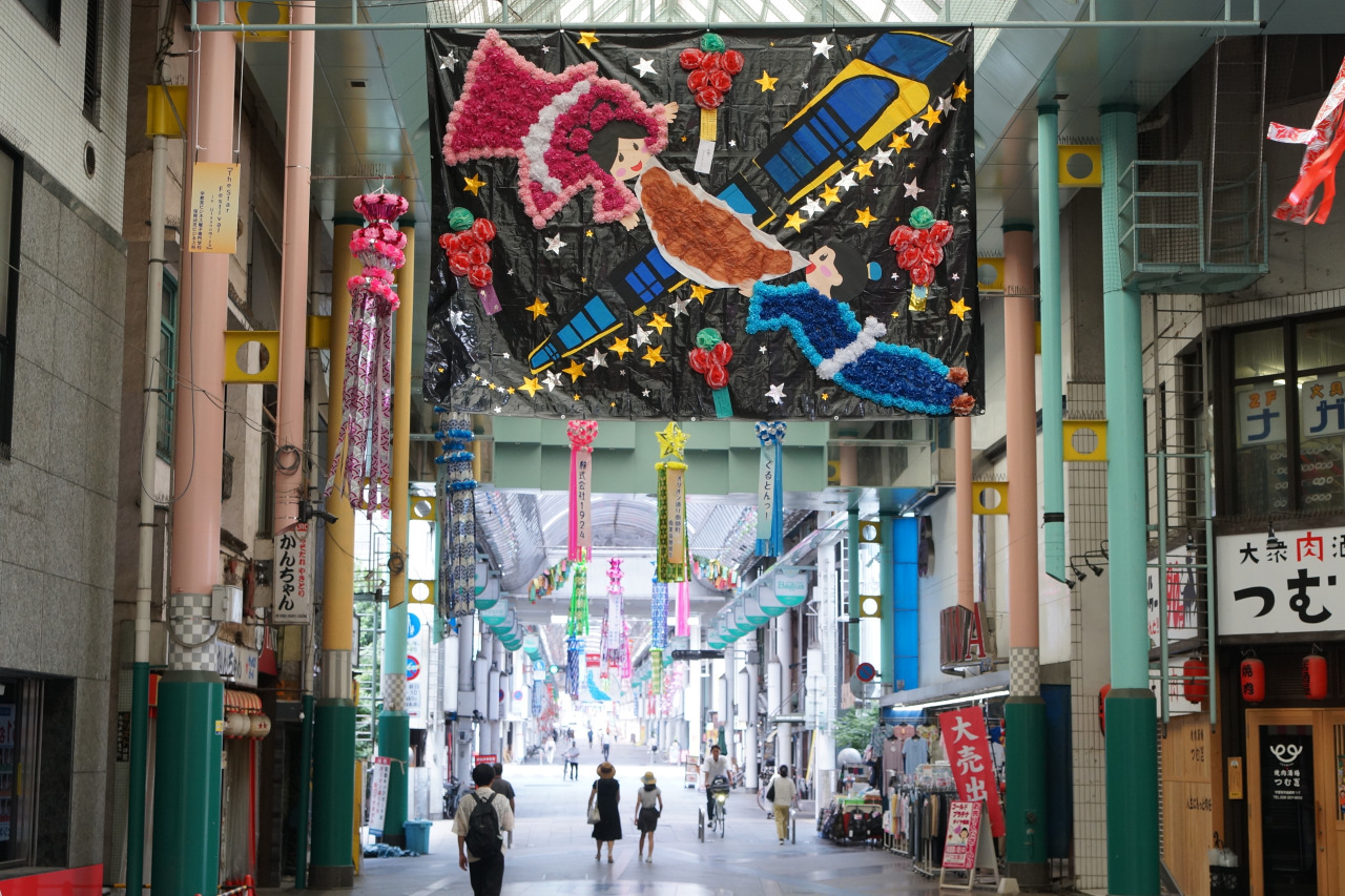 市内で最も通行量が多い商店街であるオリオン通りで七夕飾りが施されるおまつりです。地元幼稚園や学校等が30点以上を掲出し、色とりどりの七夕飾りが商店街を華やかに彩ります。商店街やマスコミ関係者らによる審査も実施され、最高賞のオリオン賞には賞金10万円が進呈されています。