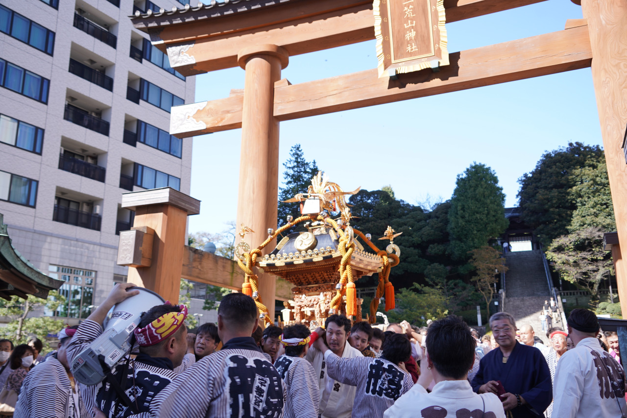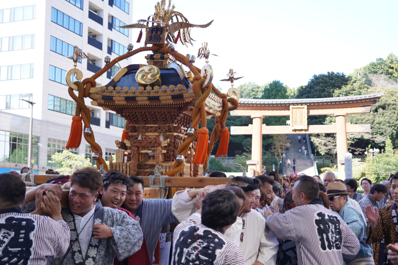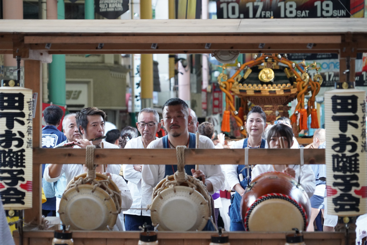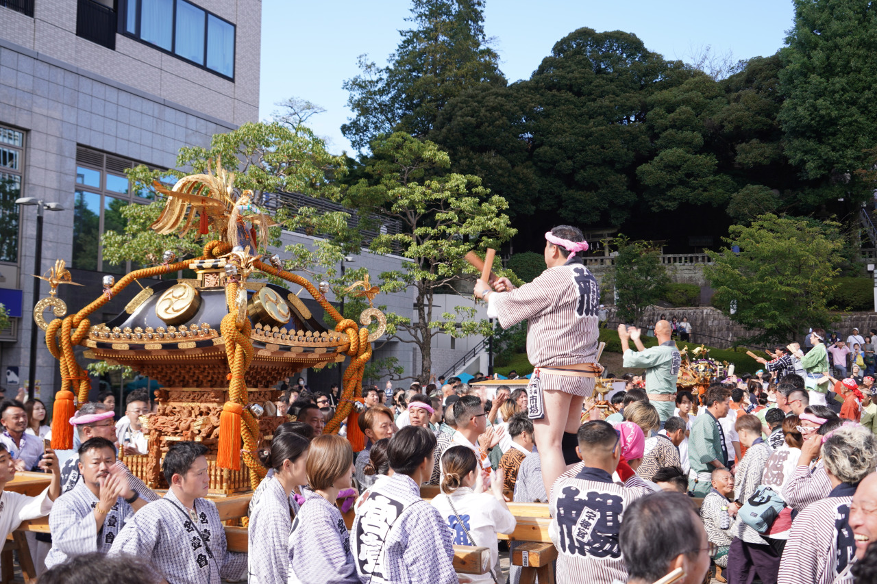 中心市街地を盛り上げようと江野町自治会、日野町自治会、市場の神輿が街中を渡御する秋の風物詩です。二荒山神社参道のバンバ広場をスタートし、バンバ通り、オリオン通りを掛け声とともに練り歩きます。